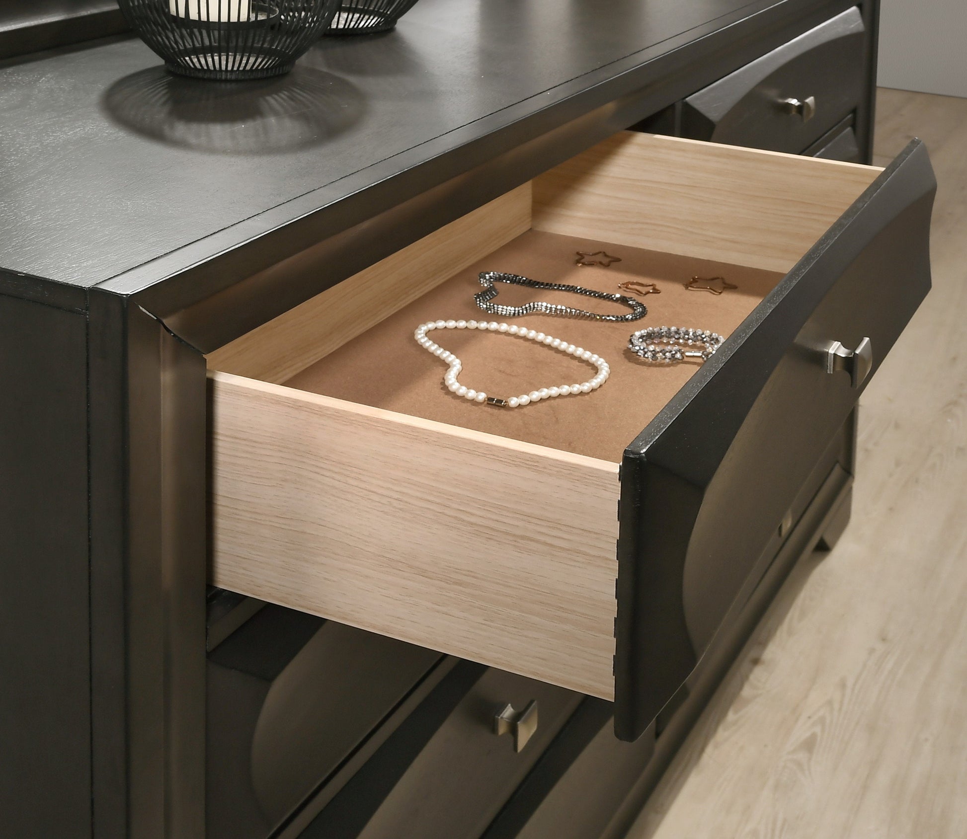 - Chest features 5 drawers to provide ample storage space for your bedroom, Dovetail construction on all drawers, top drawers with velvet lined, dust proof bottom