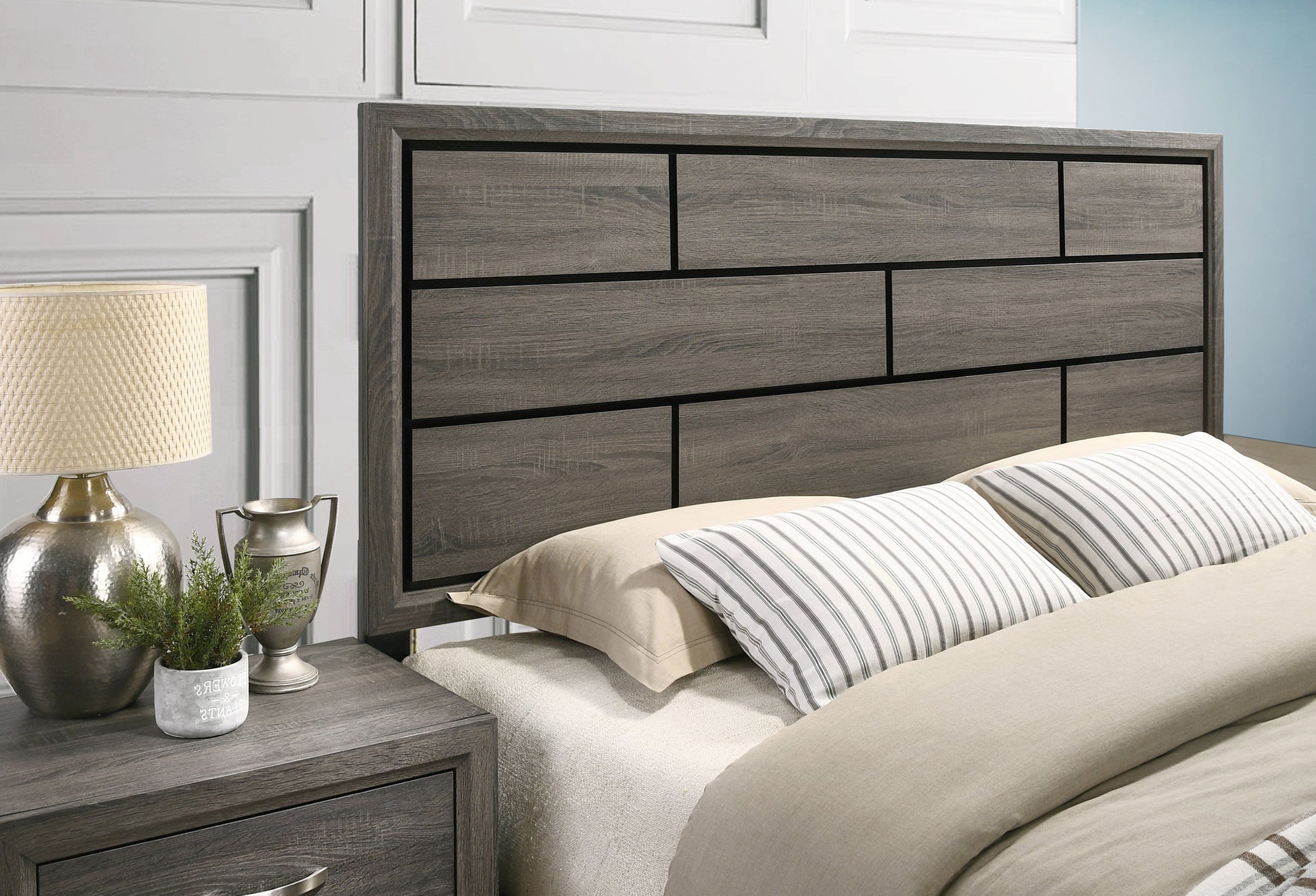 For a perfectly homey cabin vibe, invite the Stout Panel Bed into your bedroom. The simple panel bed at the heart of this set is detailed by carved-in wood planks on its headboard and a low-profile footboard that stands on wood block legs. Introduce a rustic cabin feel into your bedroom with the Stout Collection. Its pieces are built of solid wood and veneers in a dark gray brushed finish. Woodblock framing with black-colored legs lends a robust look to this bedroom furniture collection.