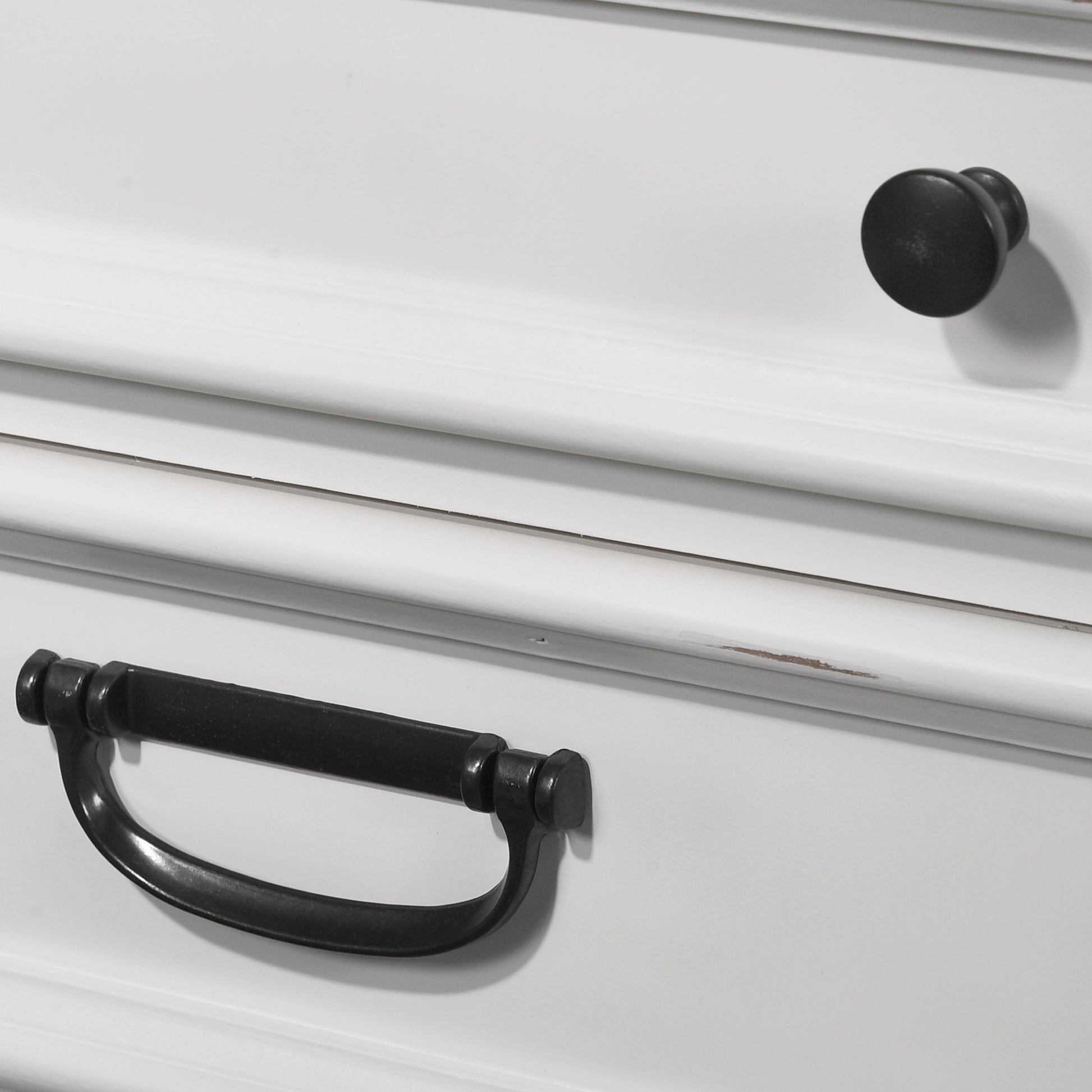 - Elegant Craftsmanship: Choose from weathered white/dark gray or slate blue/honey oak finish to match various decor styles, each adding a touch of rustic elegance. The dresser boasts a five-step finish, complete with a protective lacquer top coat, enhancing the distressed detailing and carved trim.