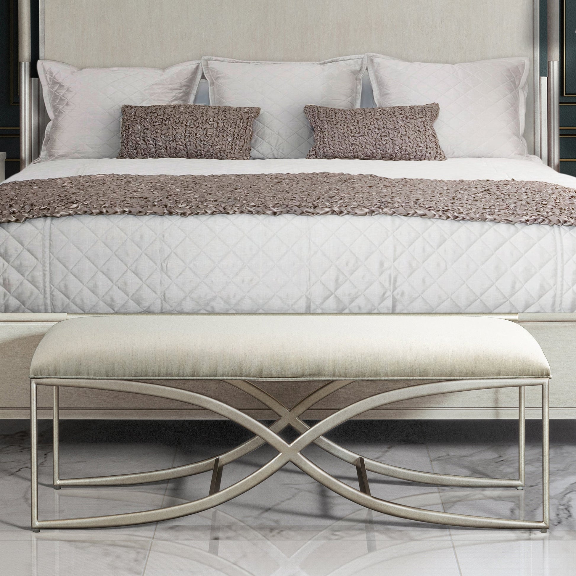 Mantalia Upholstered Bench with Metal Frame, Champagne