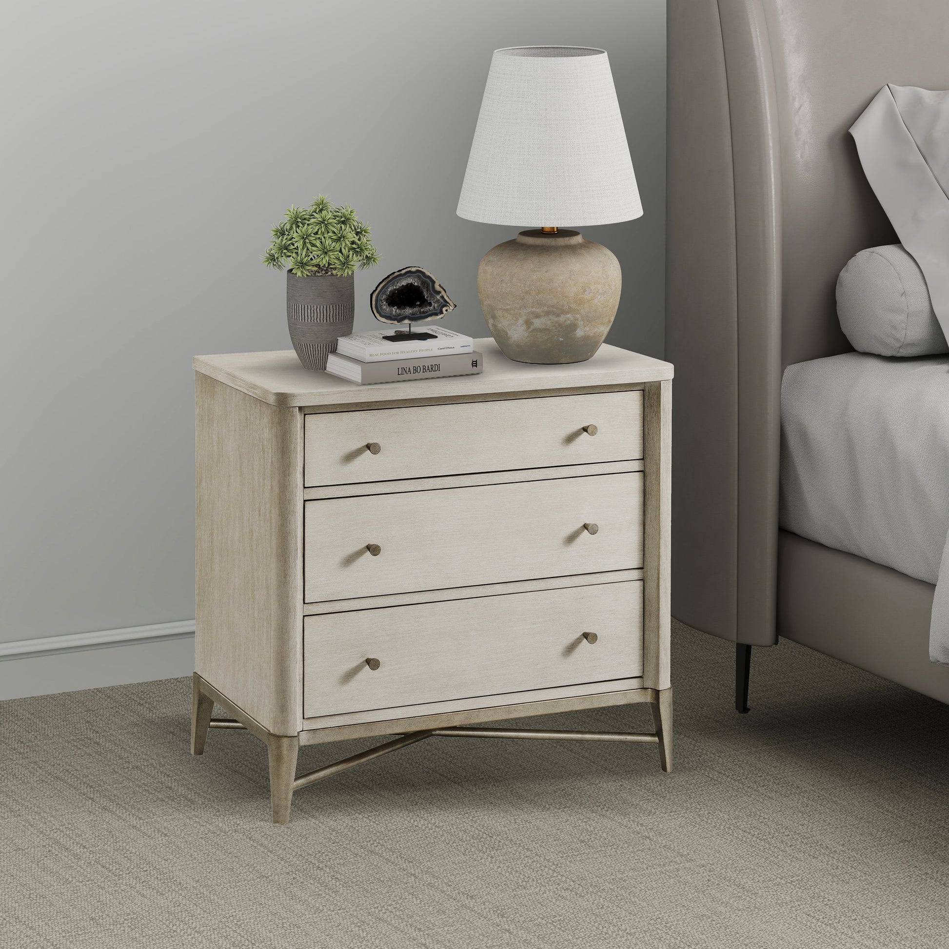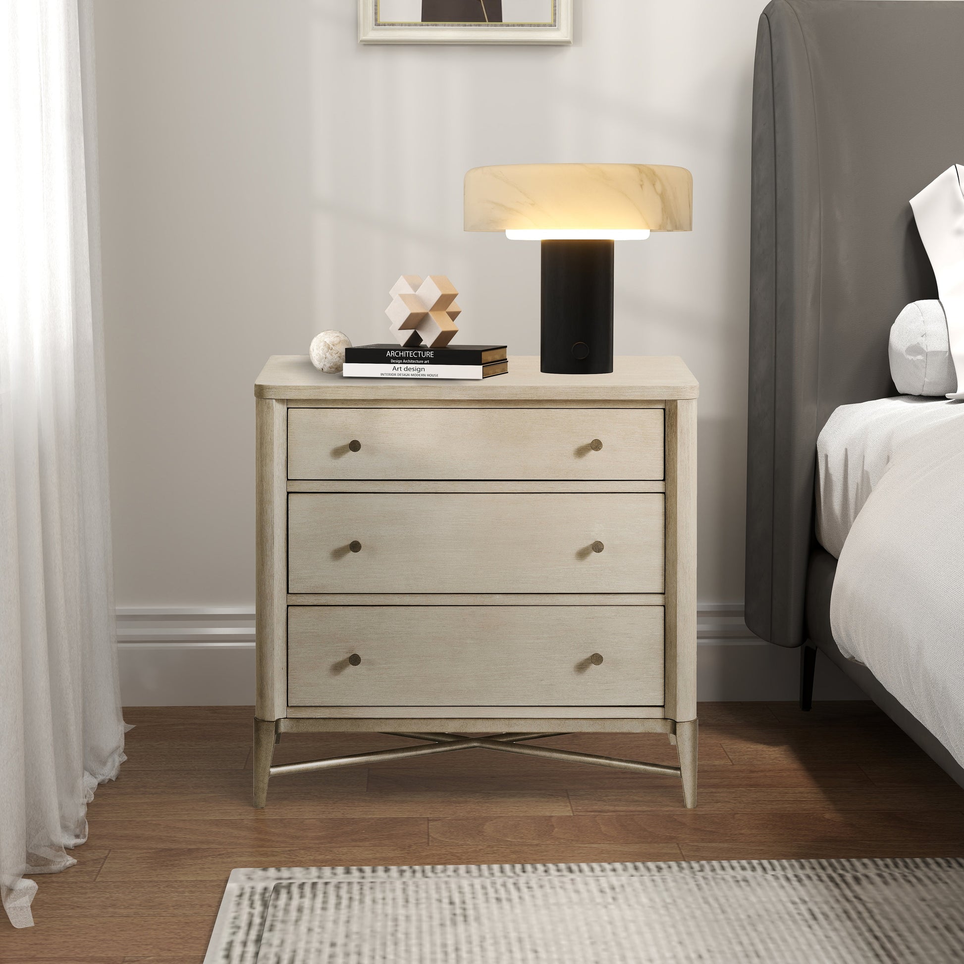 Mantalia Solid Wood 3-Drawer Nightstand with Metal Frame, Champagne