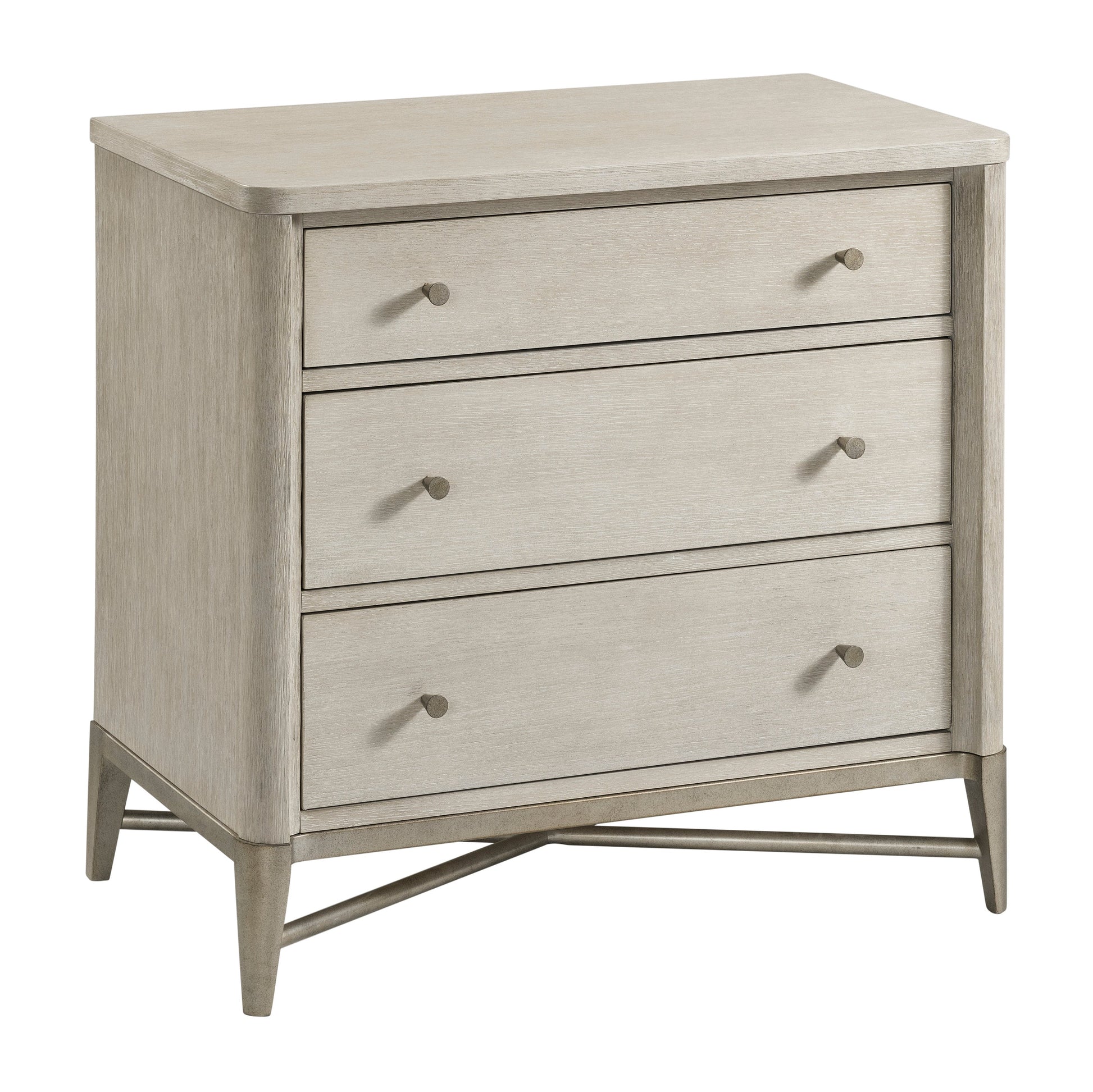 - The 3-Drawer nightstand is constructed of hardwood solid and cherry veneer with a metal framework, finished in champagne. A dual USB charging port mounted on the back