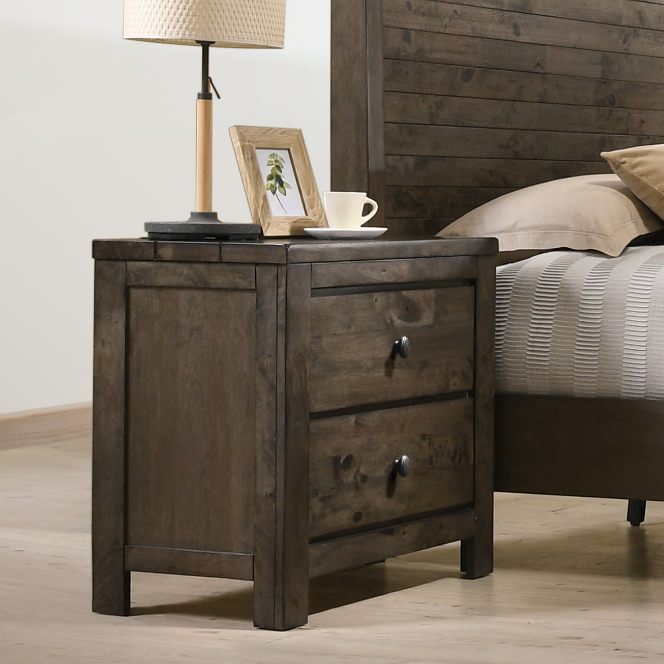 - Only includes nightstand. Hardwood solids with weather wood veneer.