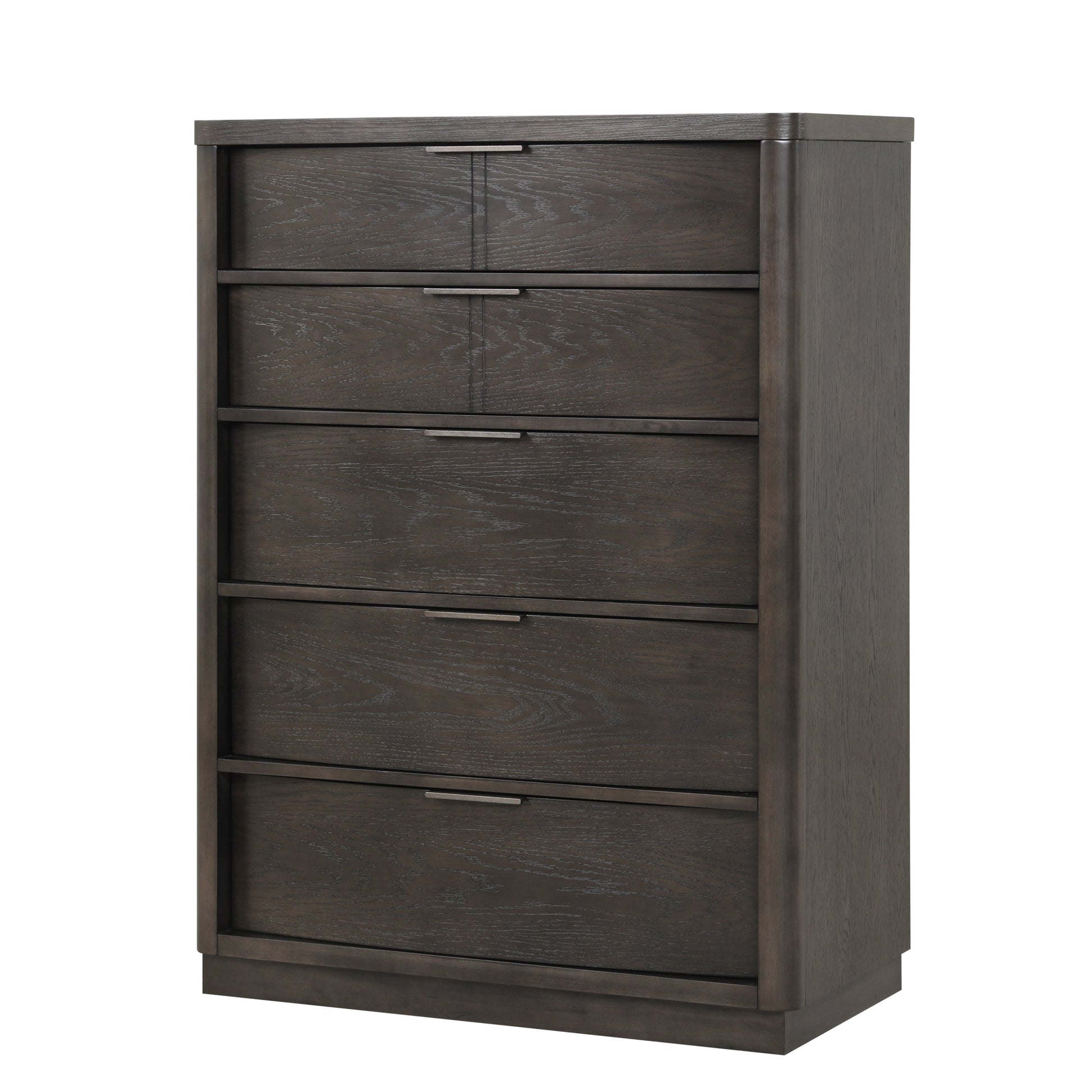 - The collection includes a king/queen panel bed, dresser, mirror, nightstand, and chest