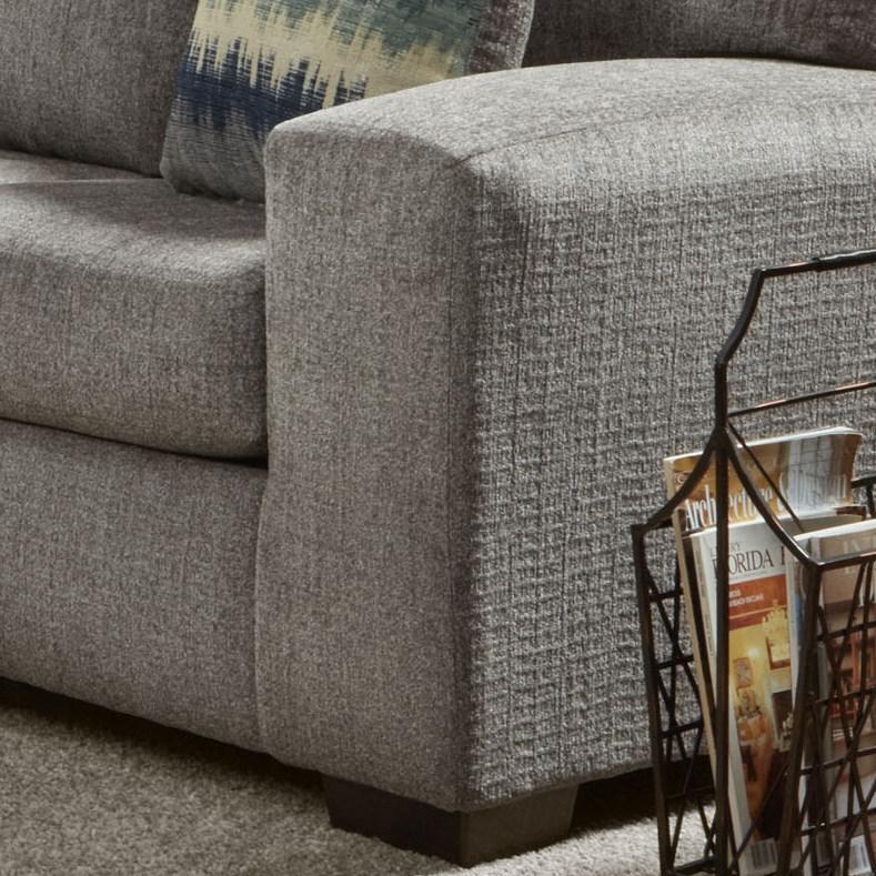 Let your living room be a sanctuary with the Bergen Silverton Pewter Fabric Sectional Sofa. With room for up to seven people, it provides plenty of room for you and your guests! This beautiful transitional design features angled block legs, wide arm's, overstuffed back cushions, and a refined silhouette. It's made in America with a solid wood frame and corner block construction. Heavy gauge coil springs and high-resiliency foam cushions with polyester wrap ensure comfort and durability for years to come.