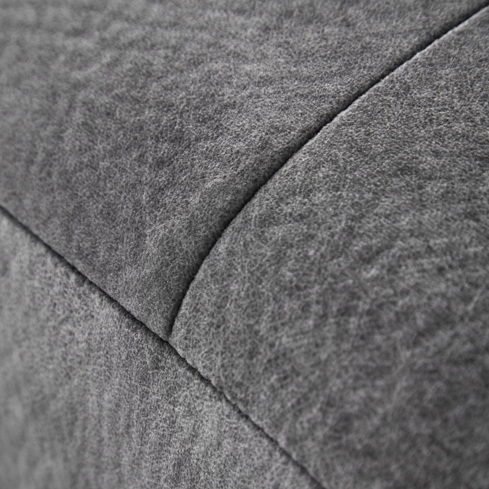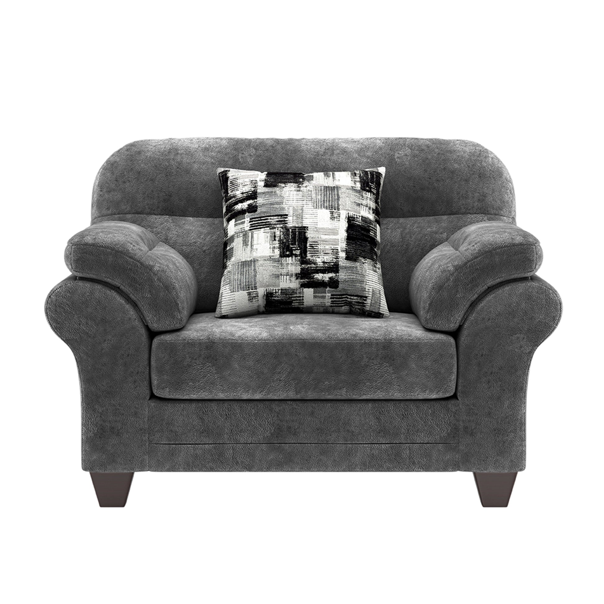 - The set includes an armchair with a storage ottoman and a throw pillow. Slate gray polyester upholstery, resilient high-density foam cushions