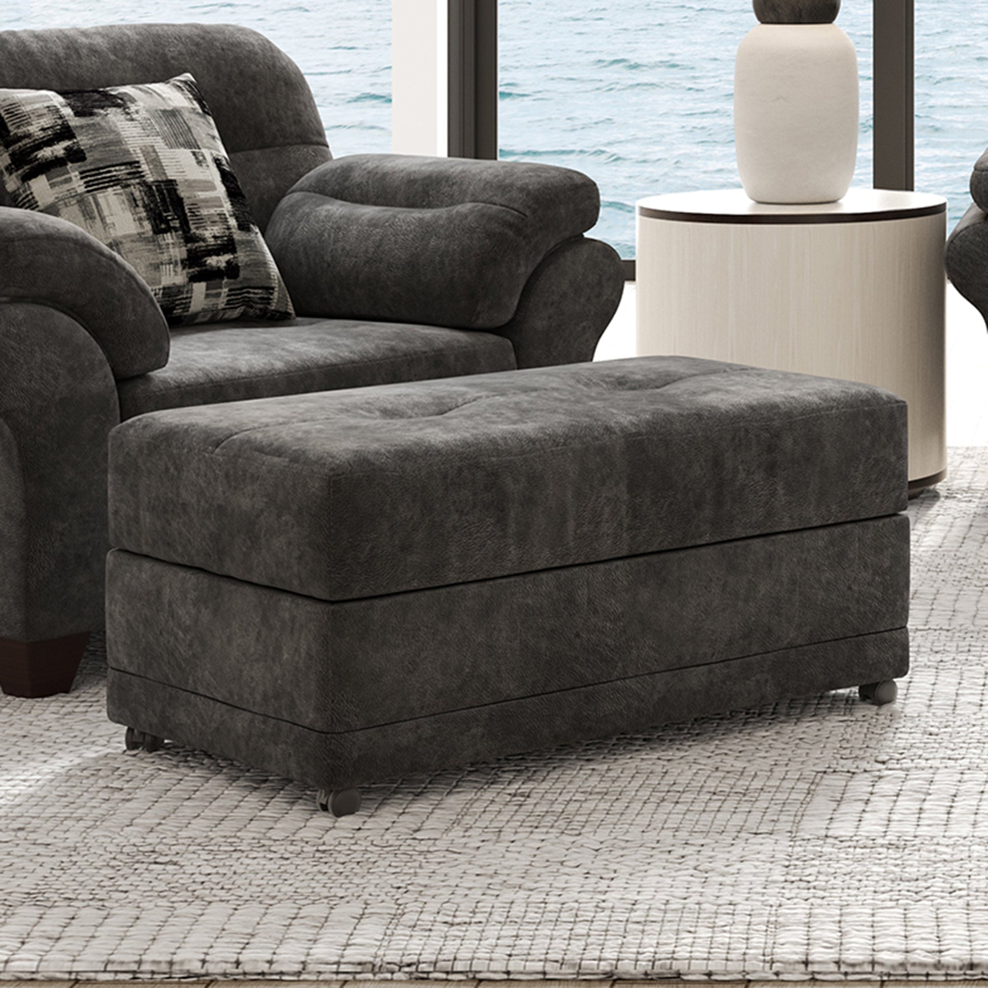 - The ottoman features hinged top that opens for storage, four casters underneath make it easy to move