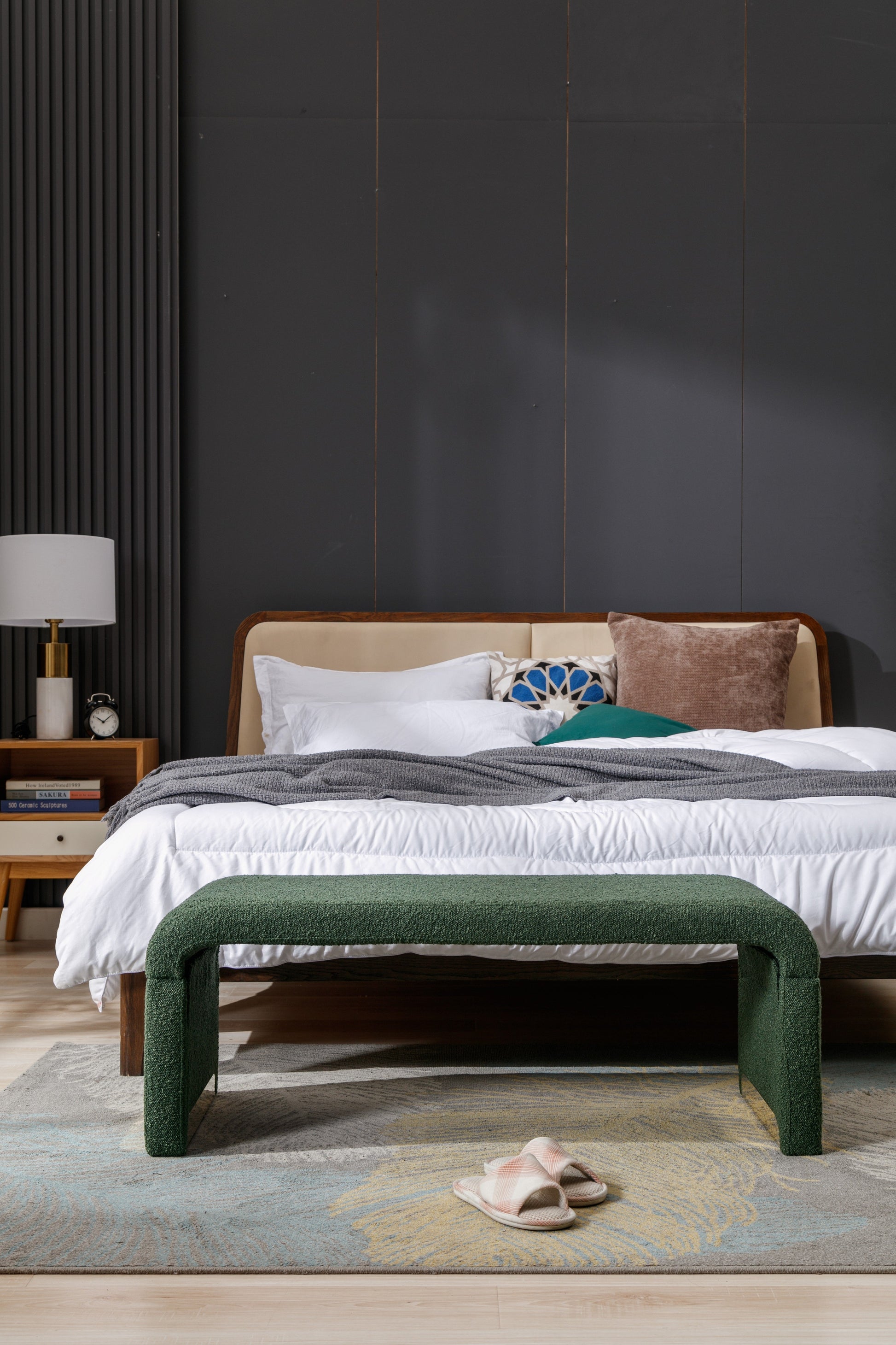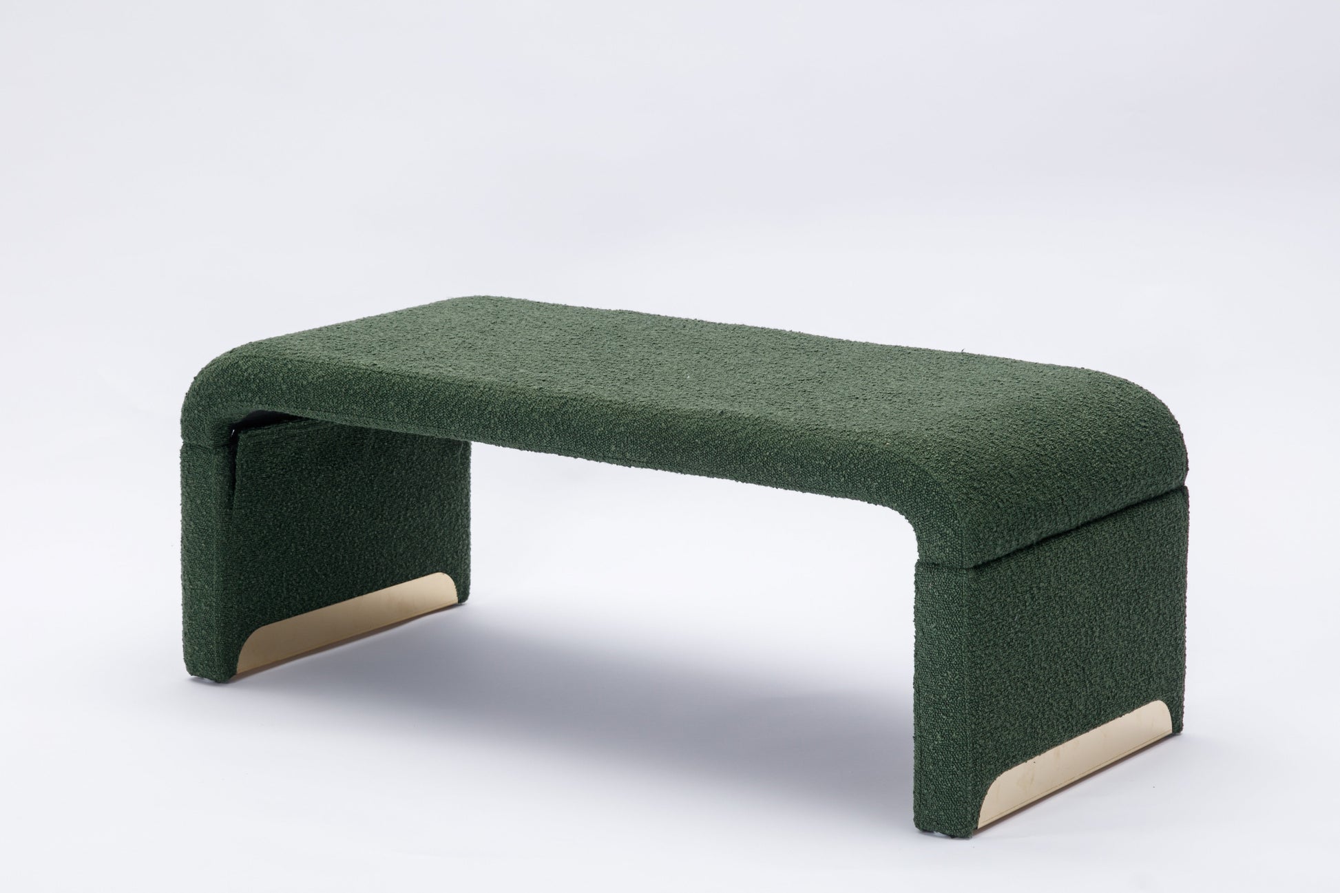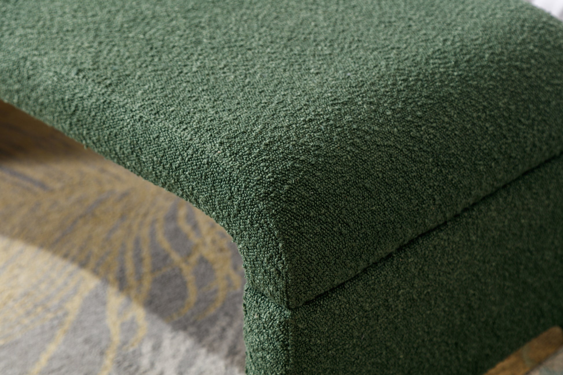 Introducing our exquisite Green Boucle Fabric Bench, a versatile and glamorous addition to your home decor. Crafted with meticulous attention to detail, this bench seamlessly combines functionality with contemporary elegance, making it the perfect accent piece for any room. Wrapped in luxurious green boucle fabric, this bench exudes sophistication and opulence, adding a touch of glamour to your space. The soft and plush texture of the fabric invites you to sit back and relax, while its vibrant green color brings a refreshing pop of color to your decor. Designed with versatility in mind, this bench serves as both a stylish bedroom bench and a practical shoe bench. Whether placed at the foot of your bed for a cozy seating area or in your entryway as a convenient spot to put on or take off your shoes, this bench effortlessly enhances the functionality of any space.