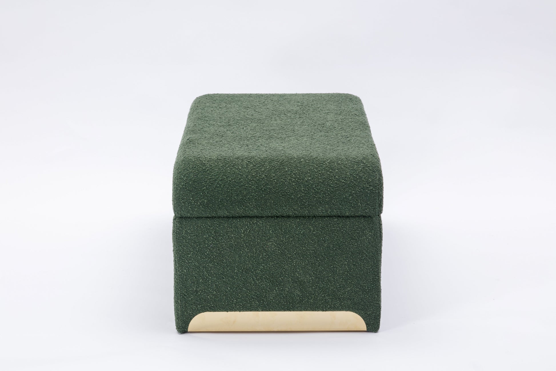 Boucle Fabric Footstool Bedroom Bench Shoe Bench With Gold Metal Legs,Green
