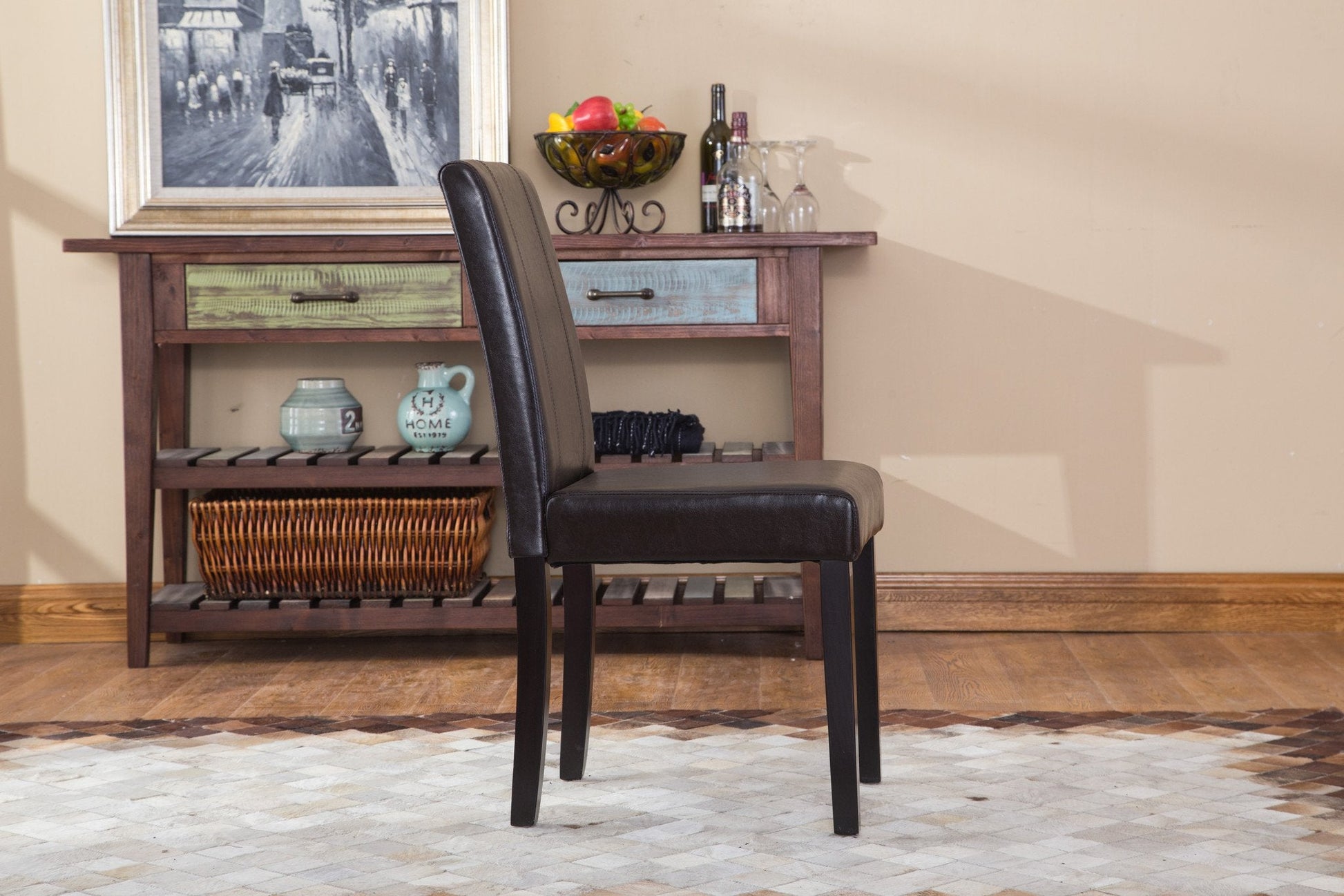 Urban Style Solid Wood Leatherette Padded Parson Chair - Set of 2