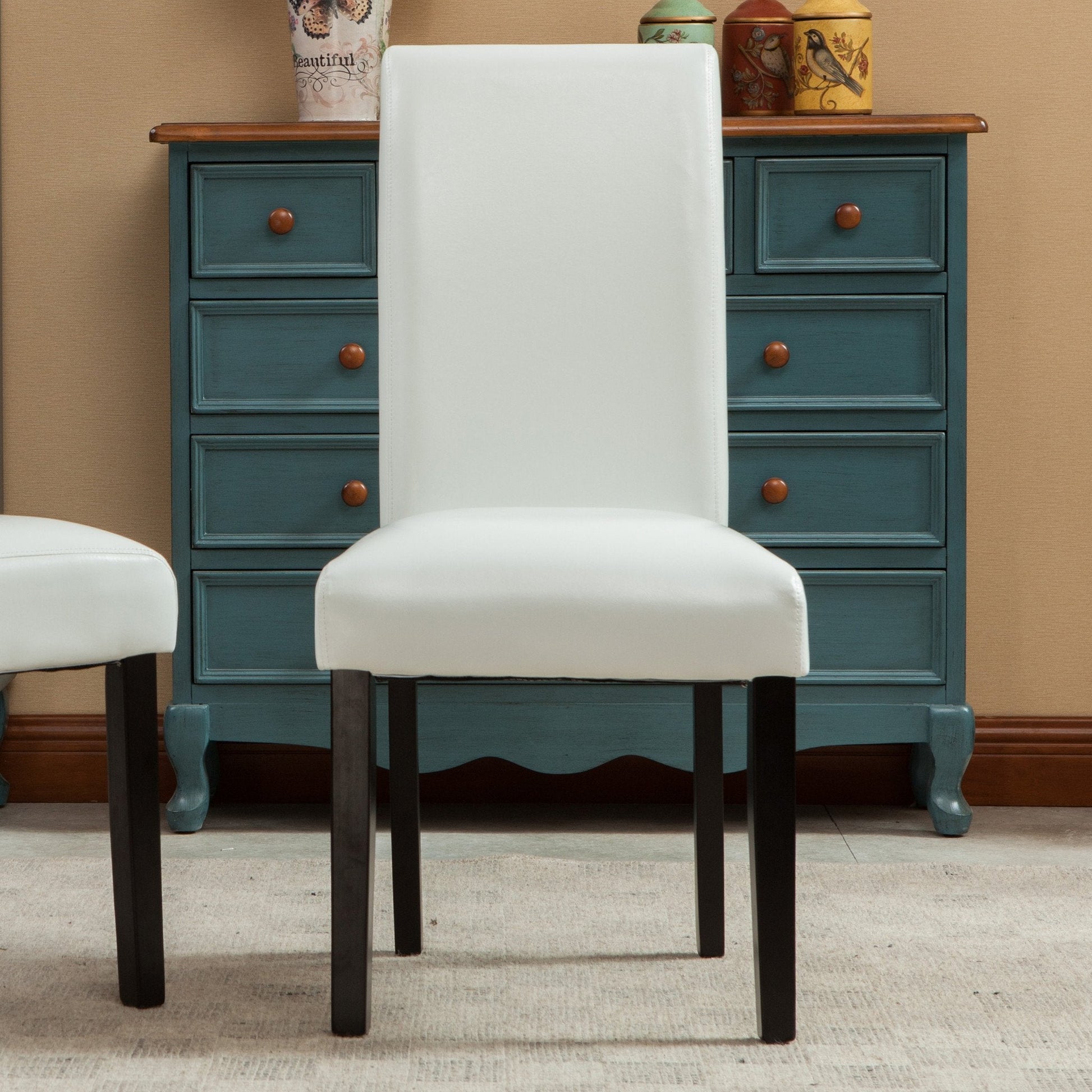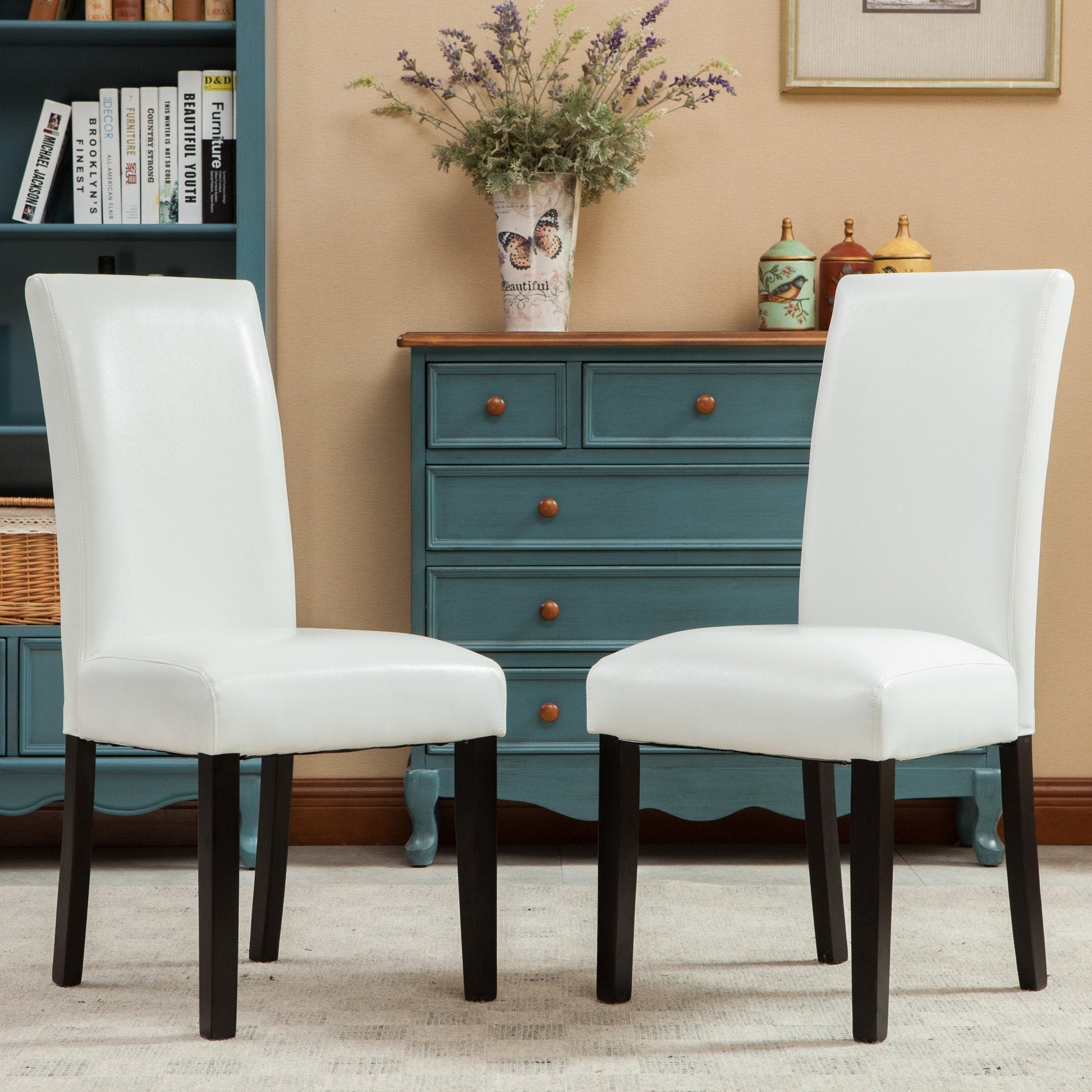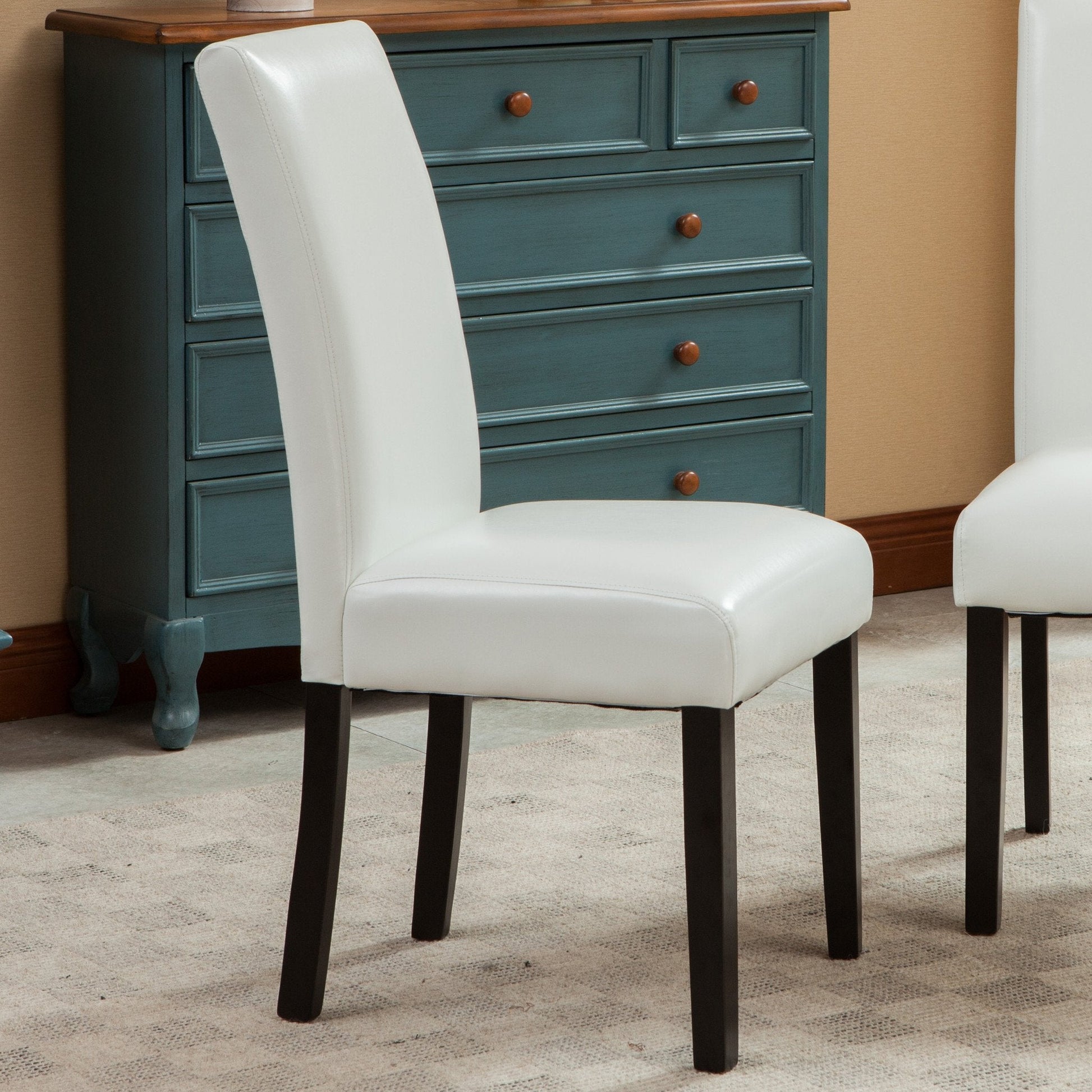 Donatello White Urban Style Solid Wood Leatherette Padded Parson Chair, Set of 2