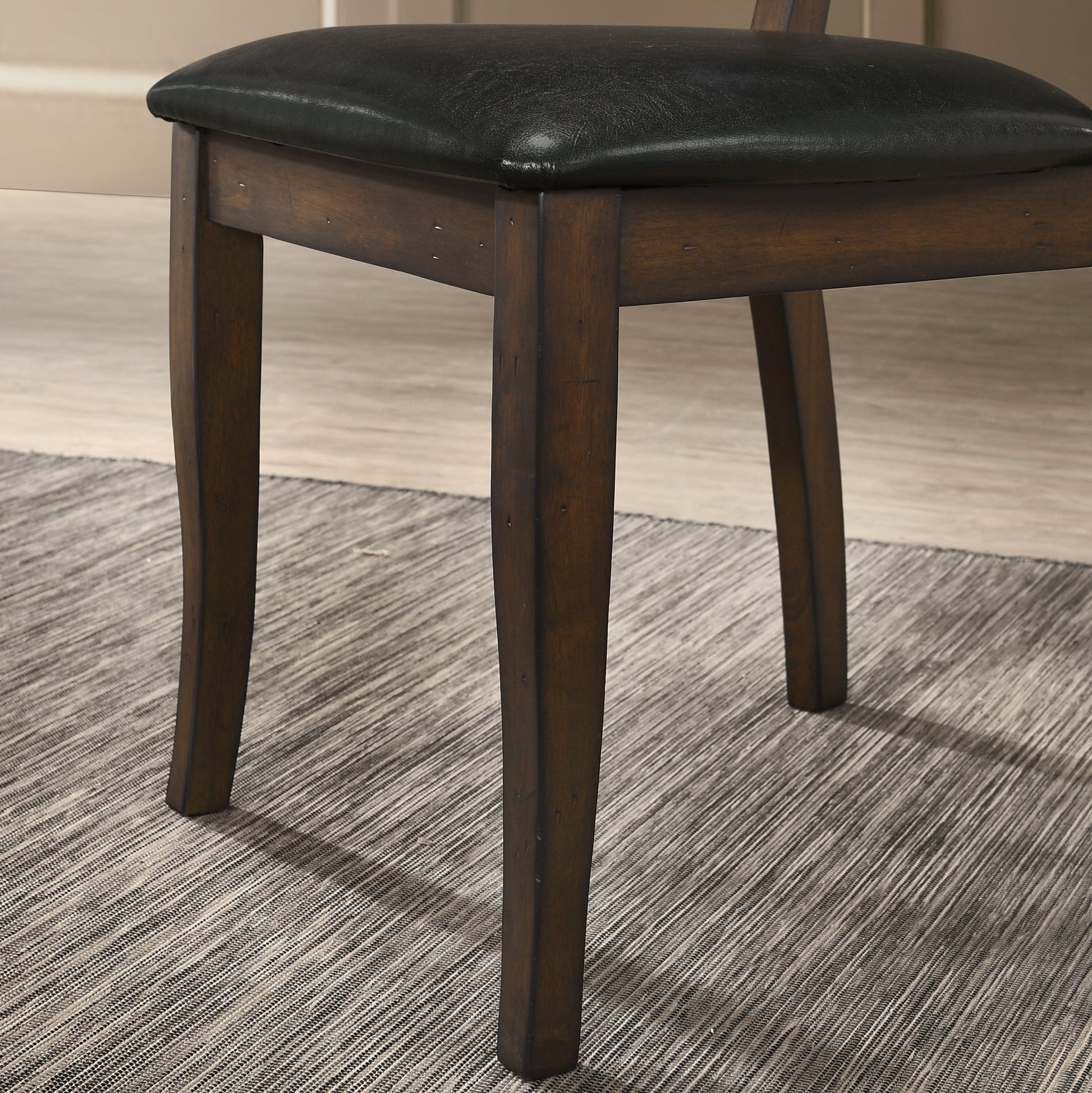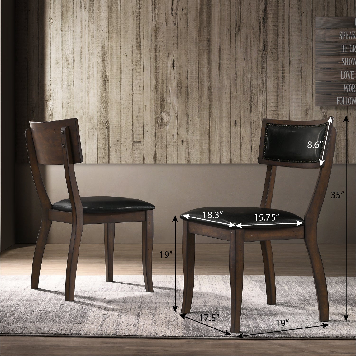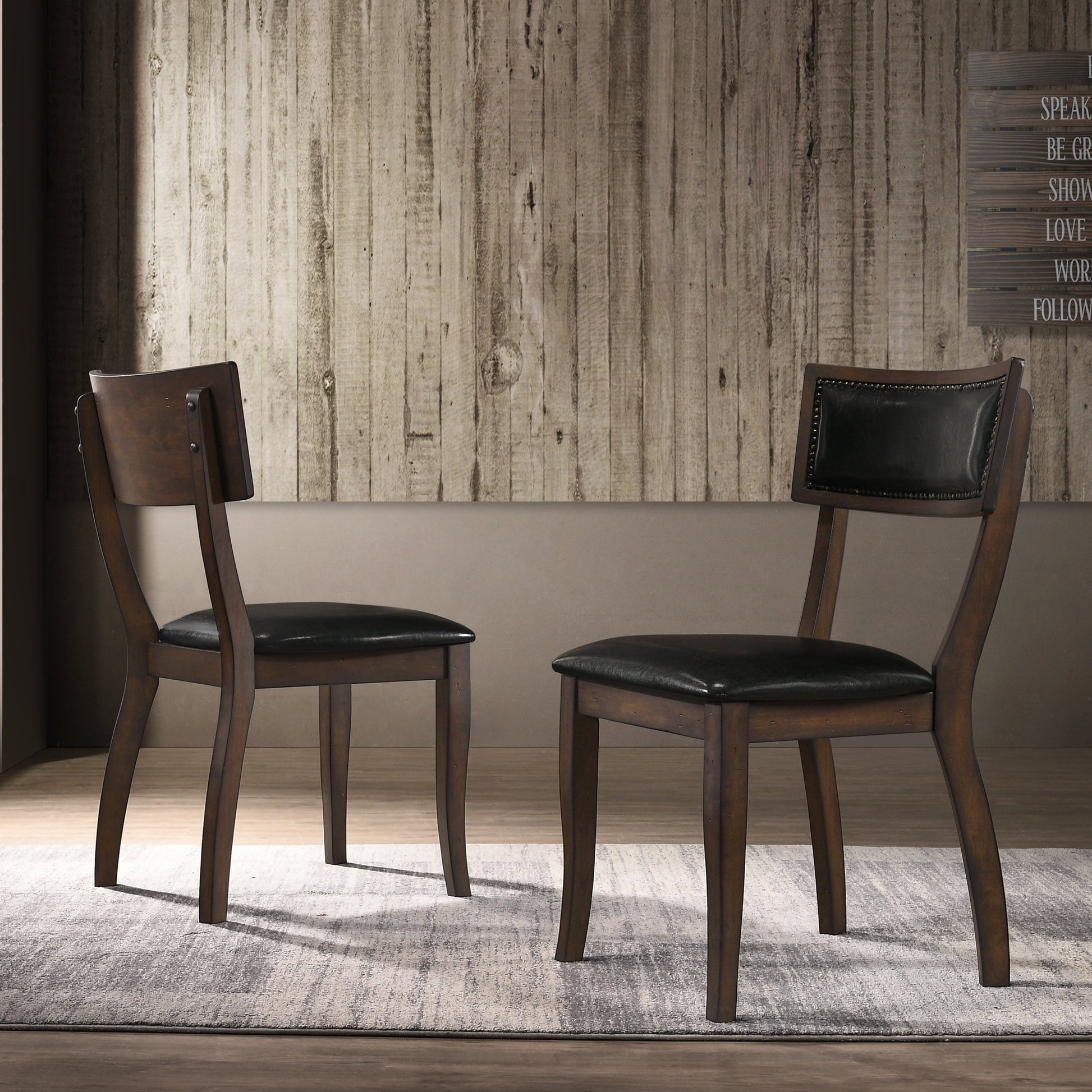 Give guests a rustic yet comfortable place to sit with the Havre Burnish Oak Finished Wood Upholstered Dining Chairs. This set includes two matching chairs. Both have solid rubberwood frames with seats and backs upholstered with durable faux leather. These dining chairs feature comfortable, foam padded seats and contoured backs.