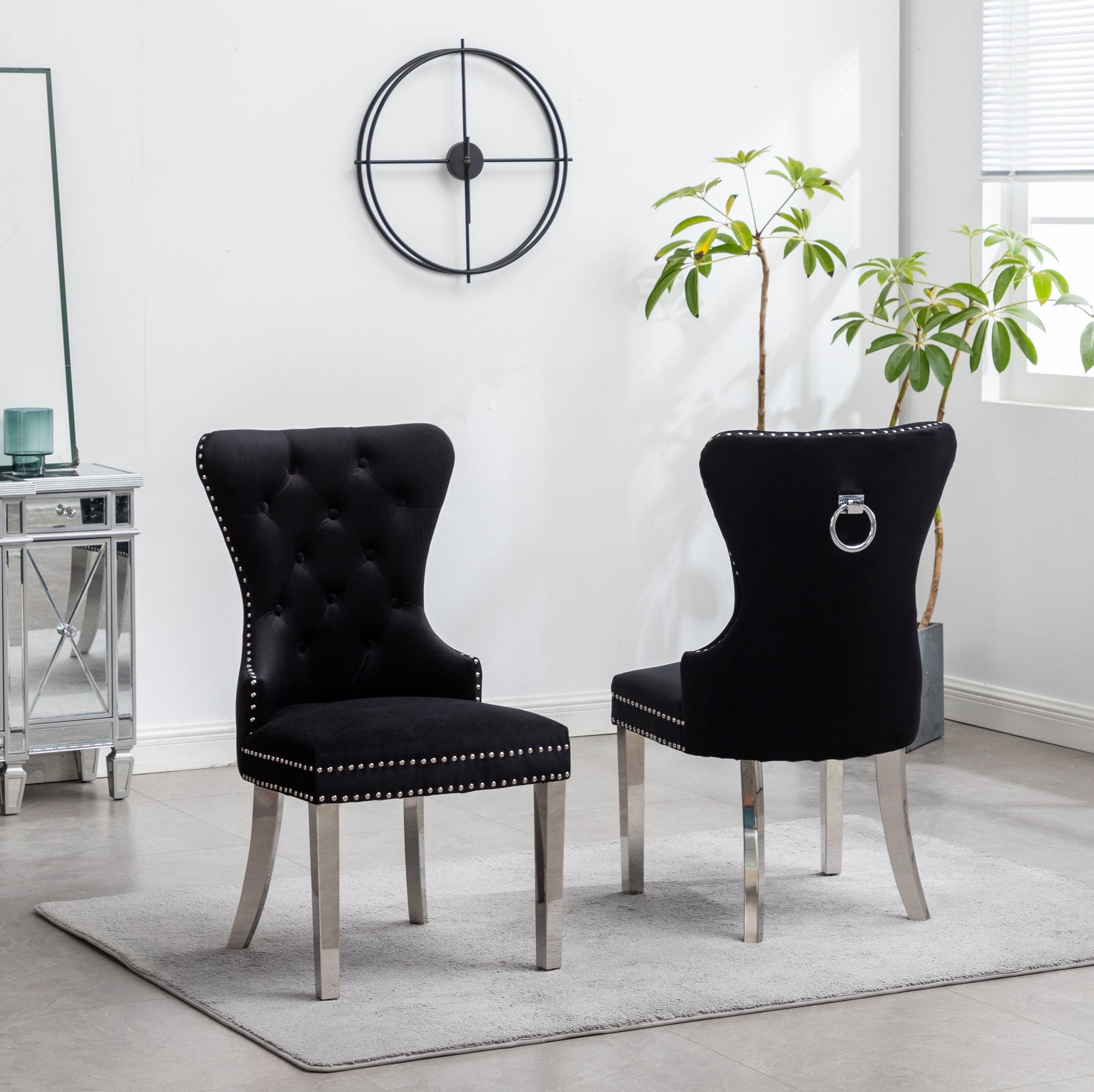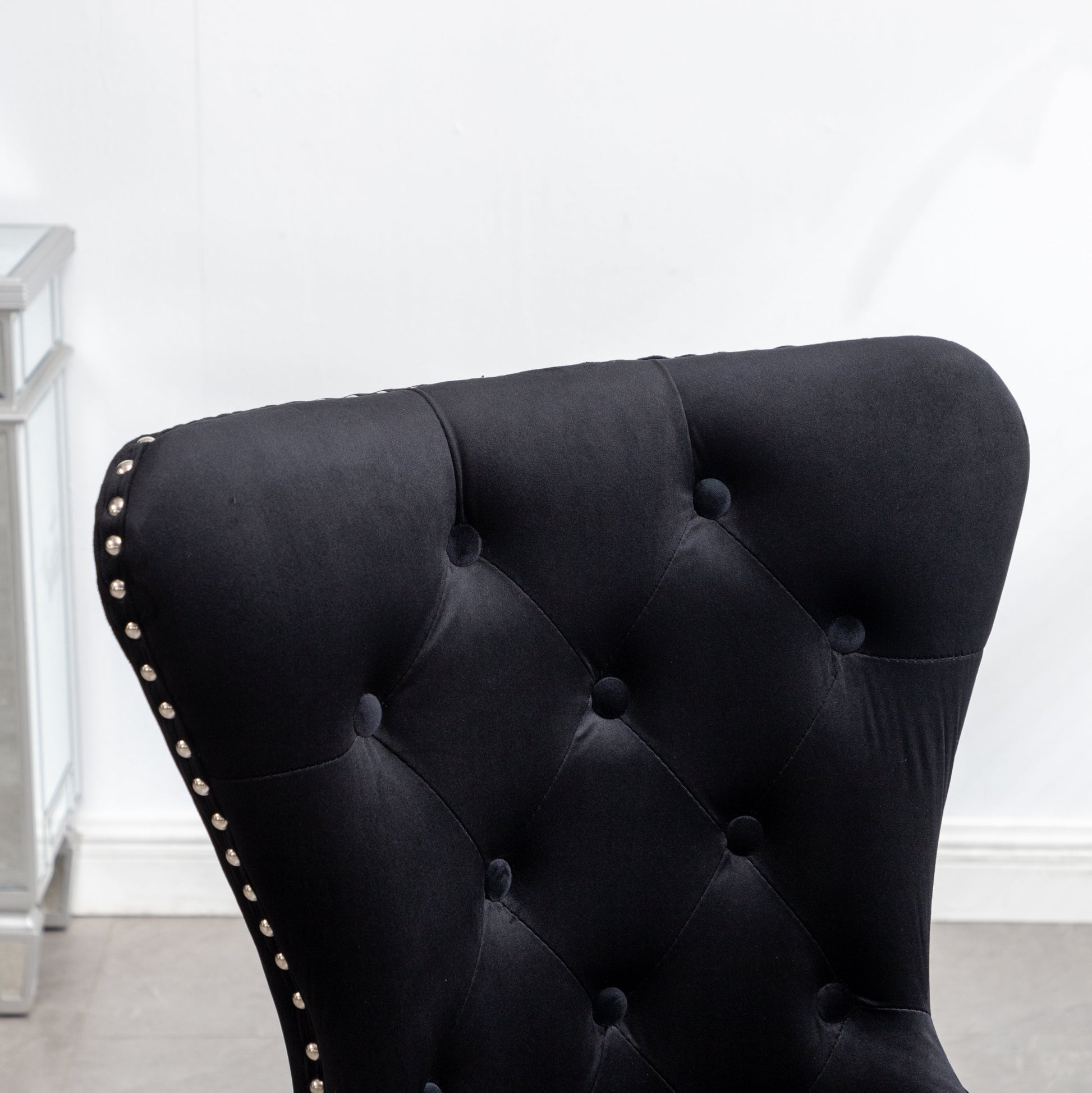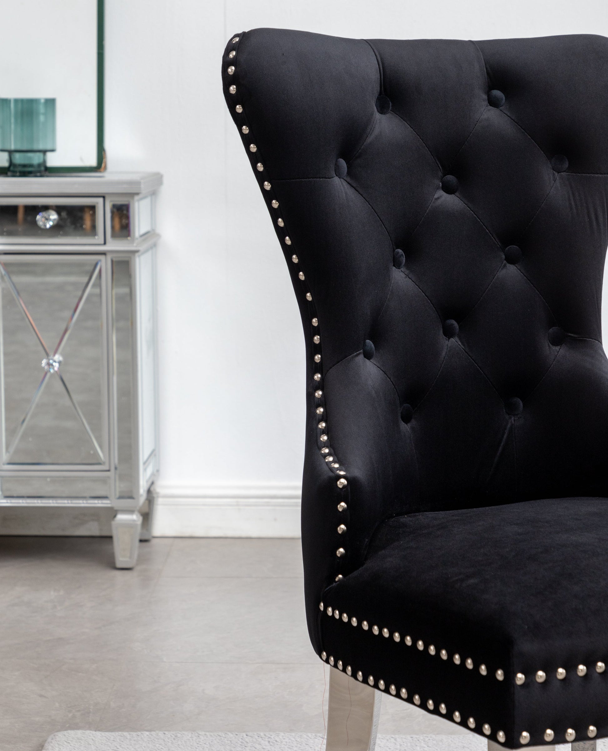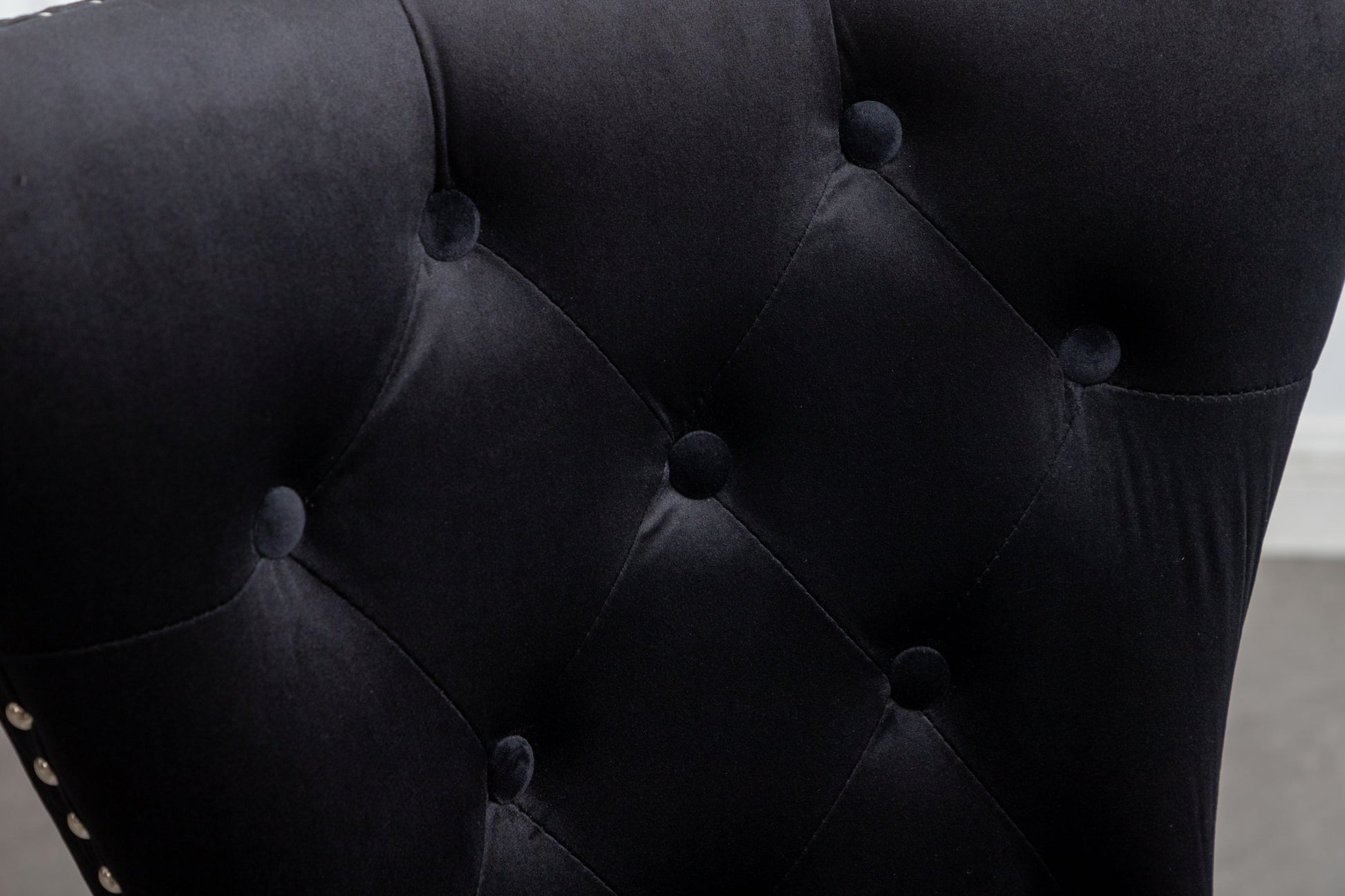 Roundhill Furniture Montura Contemporary Tufted Velvet Chair with Nailhead Trim, Black, Set of 2