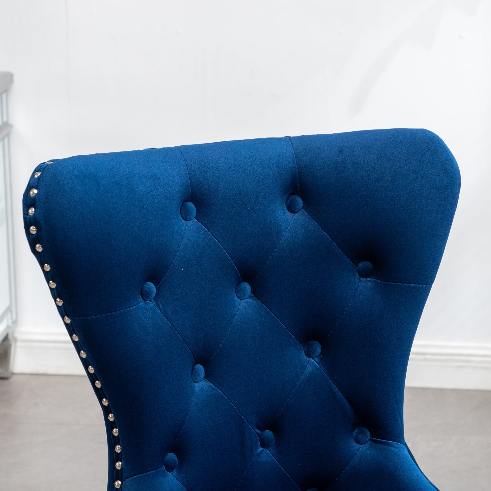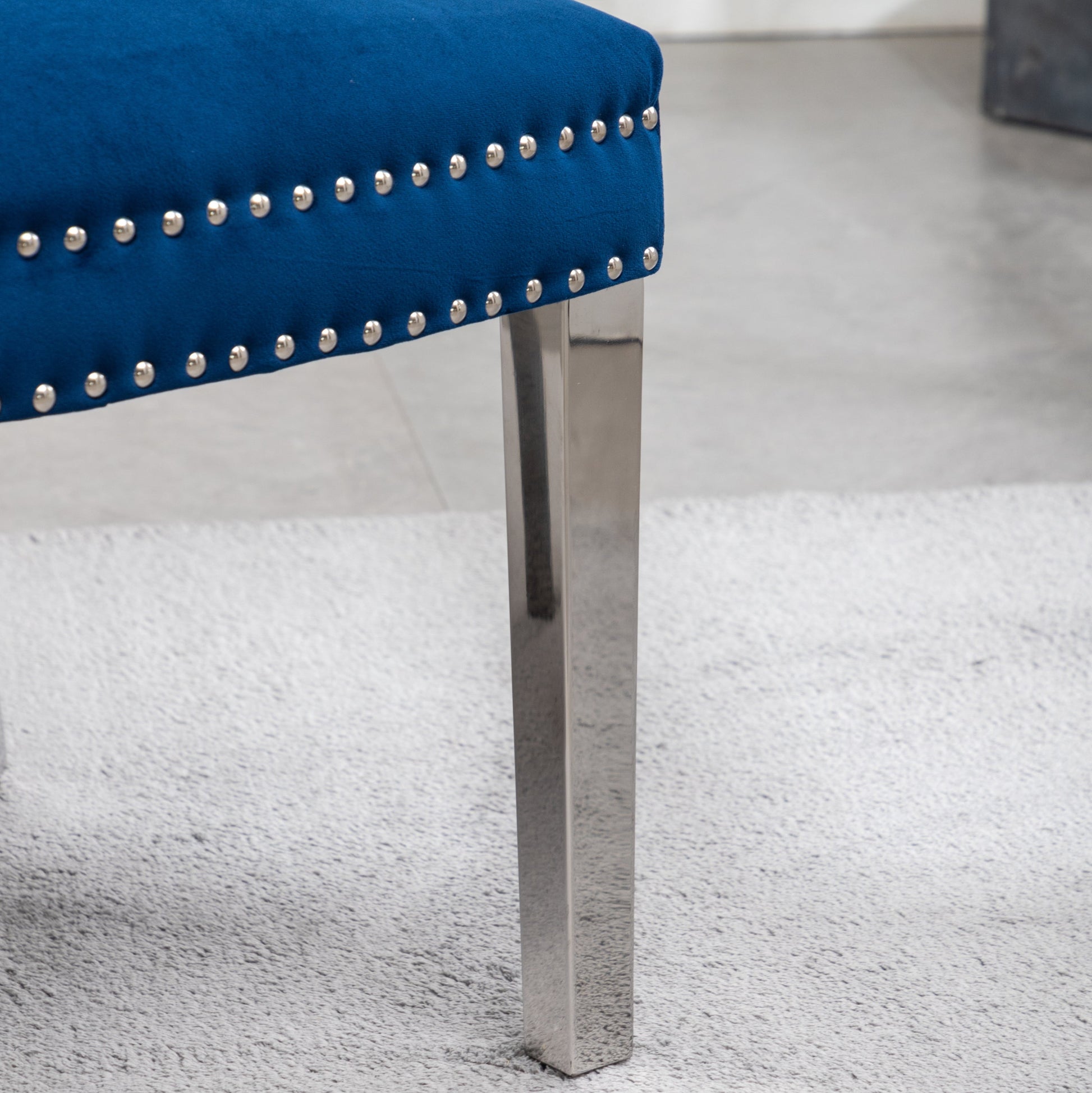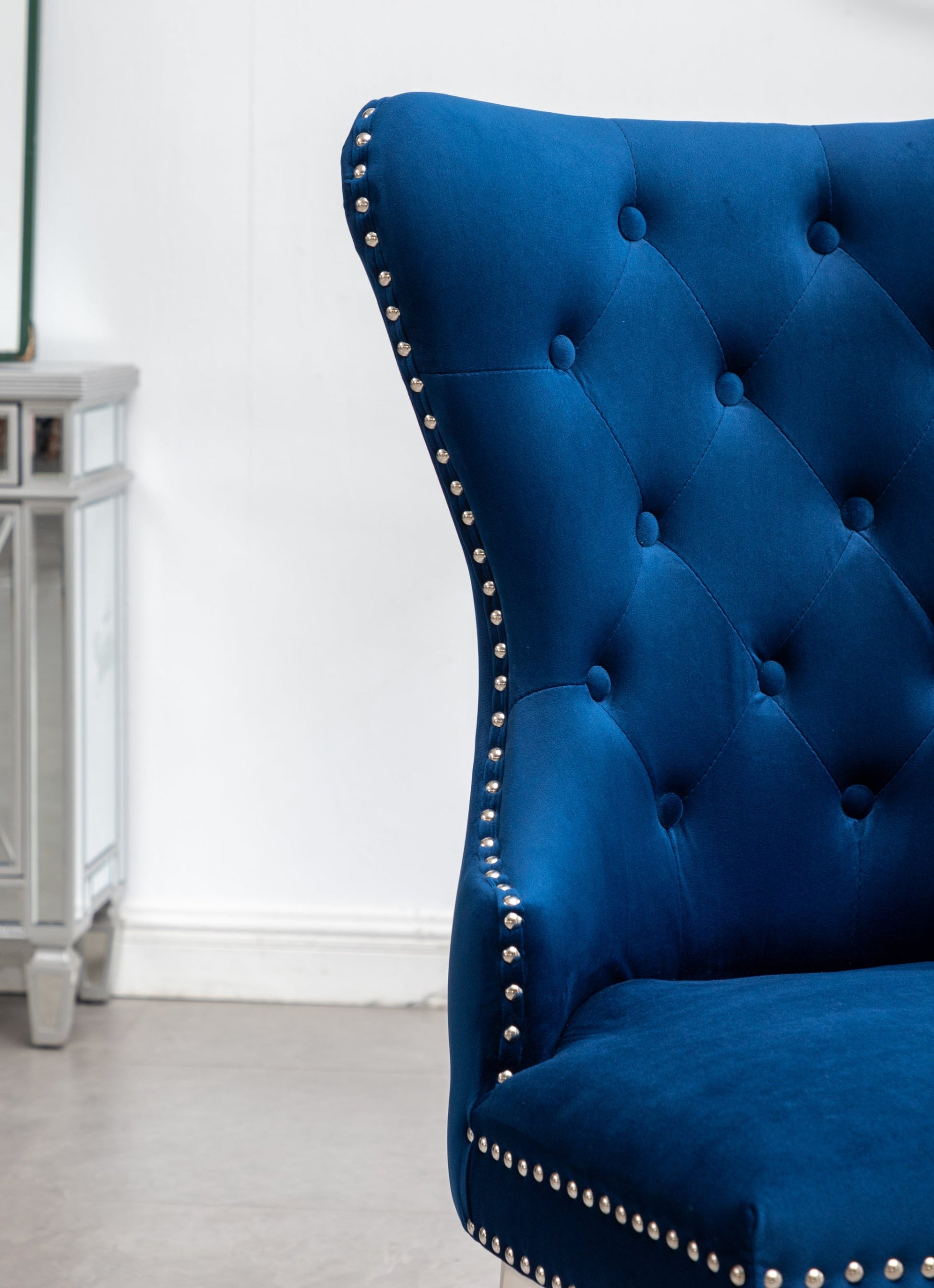 Roundhill Furniture Montura Contemporary Tufted Velvet Chair with Nailhead Trim, Blue, Set of 2