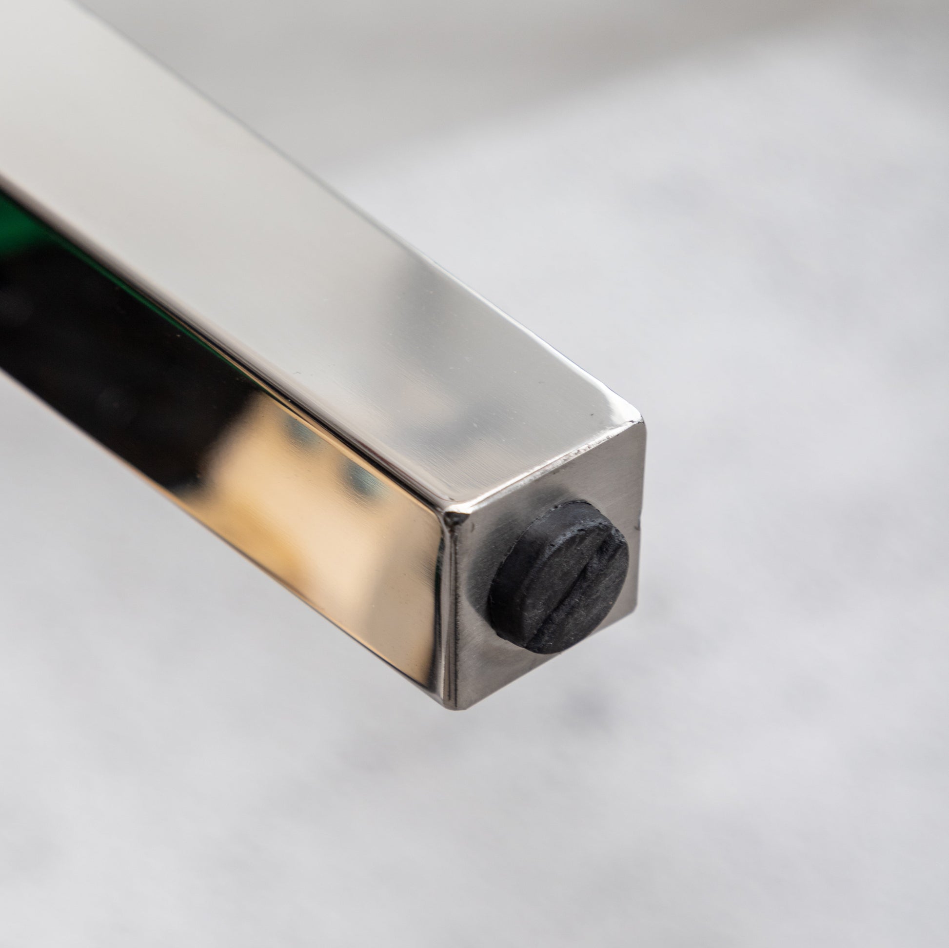 - Solid wood frame with sleek stainless steel legs ensures stability and a bold, contemporary finish.