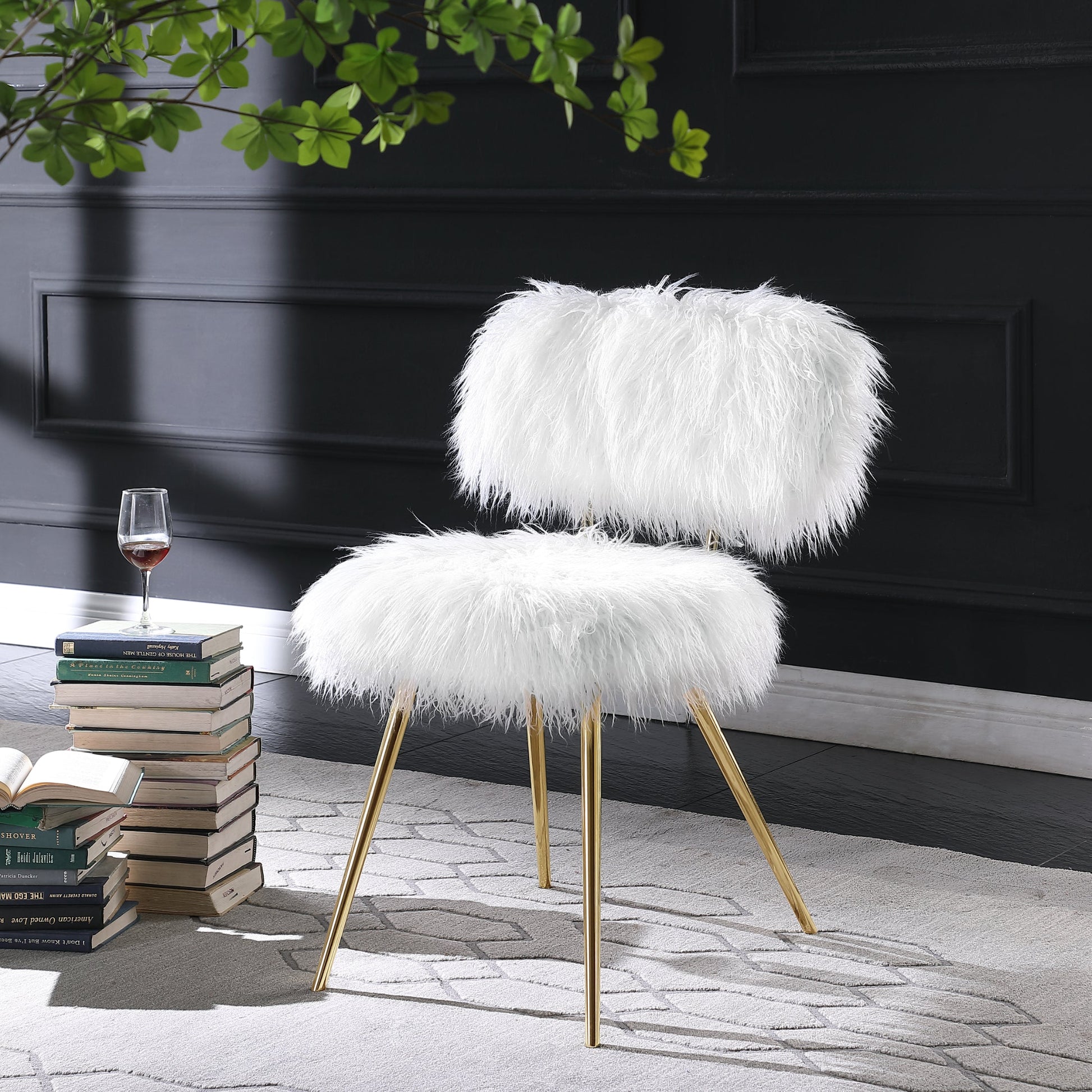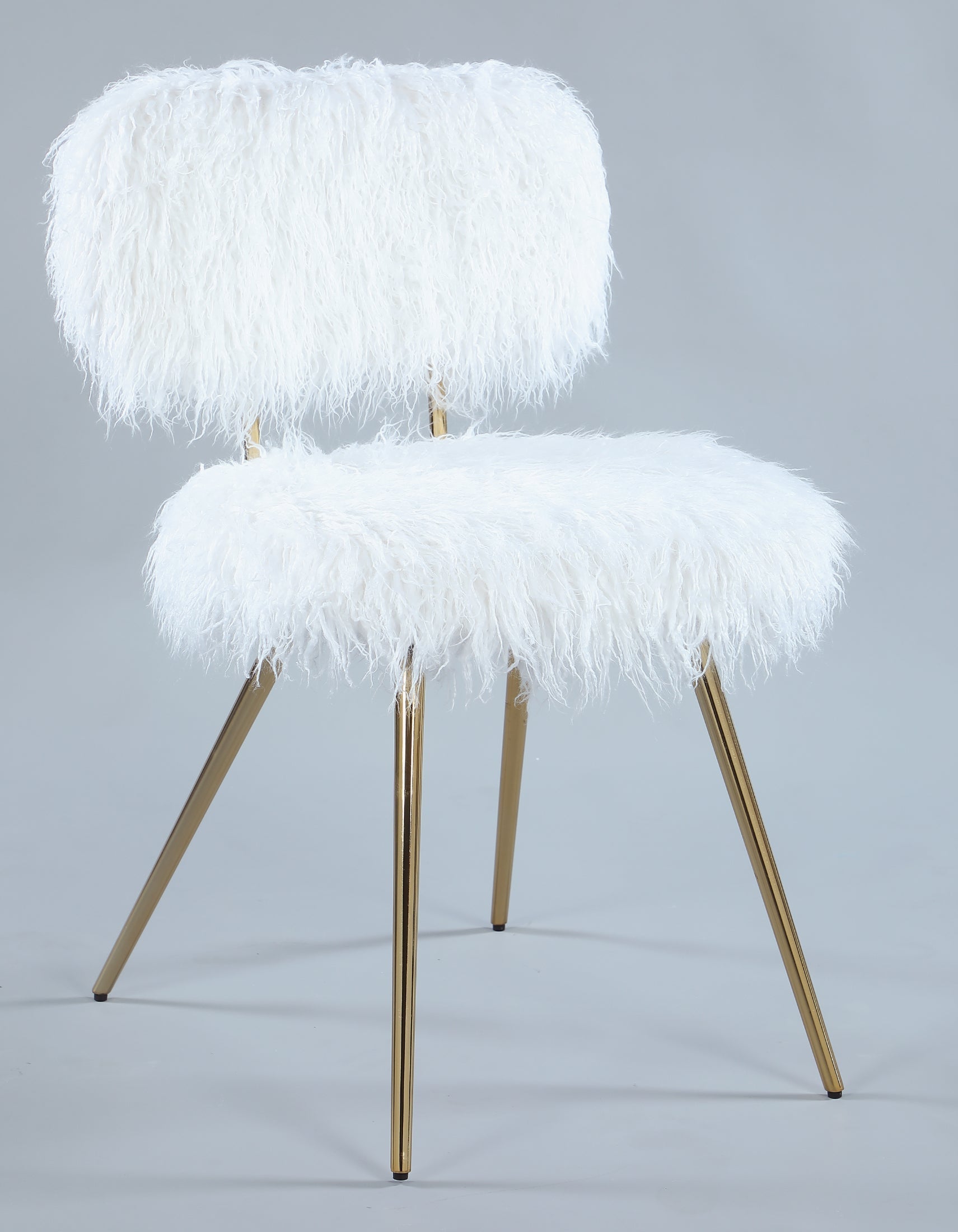 Bring the glamour style to your home with the Ravni Faux Fur Accent Chair. This chair features metal legs with an armless design and a thick-padded seat. You'll have to sit down to feel the super-fuzzy fibers of white faux fur. The padded cushion adds softness to a design that's equal parts cozy and confident. The dramatic fibers of faux fur make this set a fantastic addition to any room.