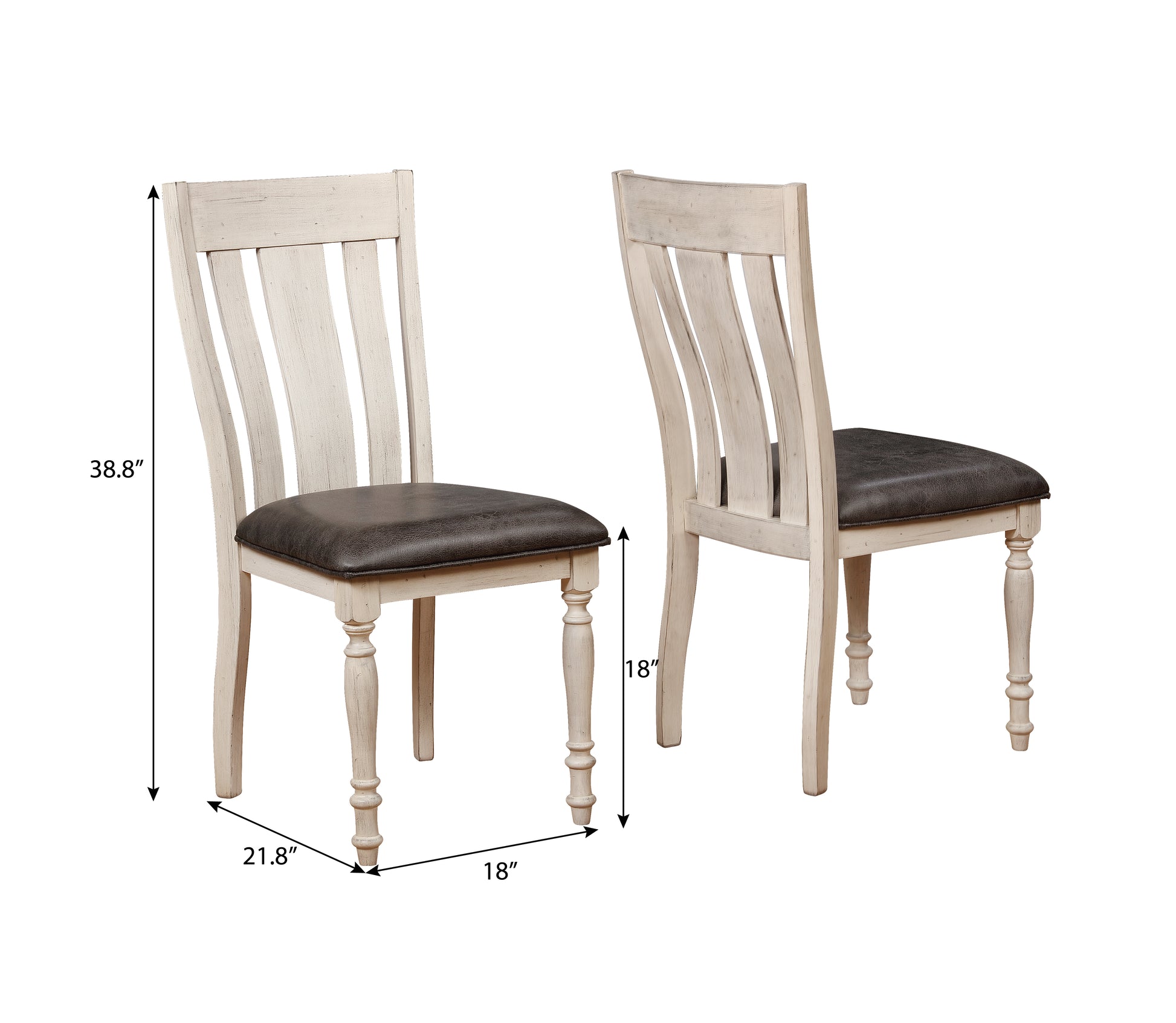 The Arch Dining Set - Weathered White & Oak helps you create a comfortable'stylish dining area for all your casual get-togethers, elaborate holiday dinners, and more. Constructed of hardwood solids, engineered wood, and veneers, this dining set includes a rectangular table and matching chairs. With its warm, traditional style, it's perfect for family meals, dinner parties, and holiday gatherings. When you need more space, simply add the leaf for extra inches of table space. That's plenty of room for guests to sit and dine comfortably. The tabletop features a multi-step distressed finish, which offers a stylish contrast to the rubbed white finish on the rest of the table. Included are matching chairs with a stylish triple back panel design. The solid wood turned legs feature a weathered white finish and carved detail for an elegant touch. The seat, which has a plentiful cushion, is contoured for your comfort. This set includes a chair only.