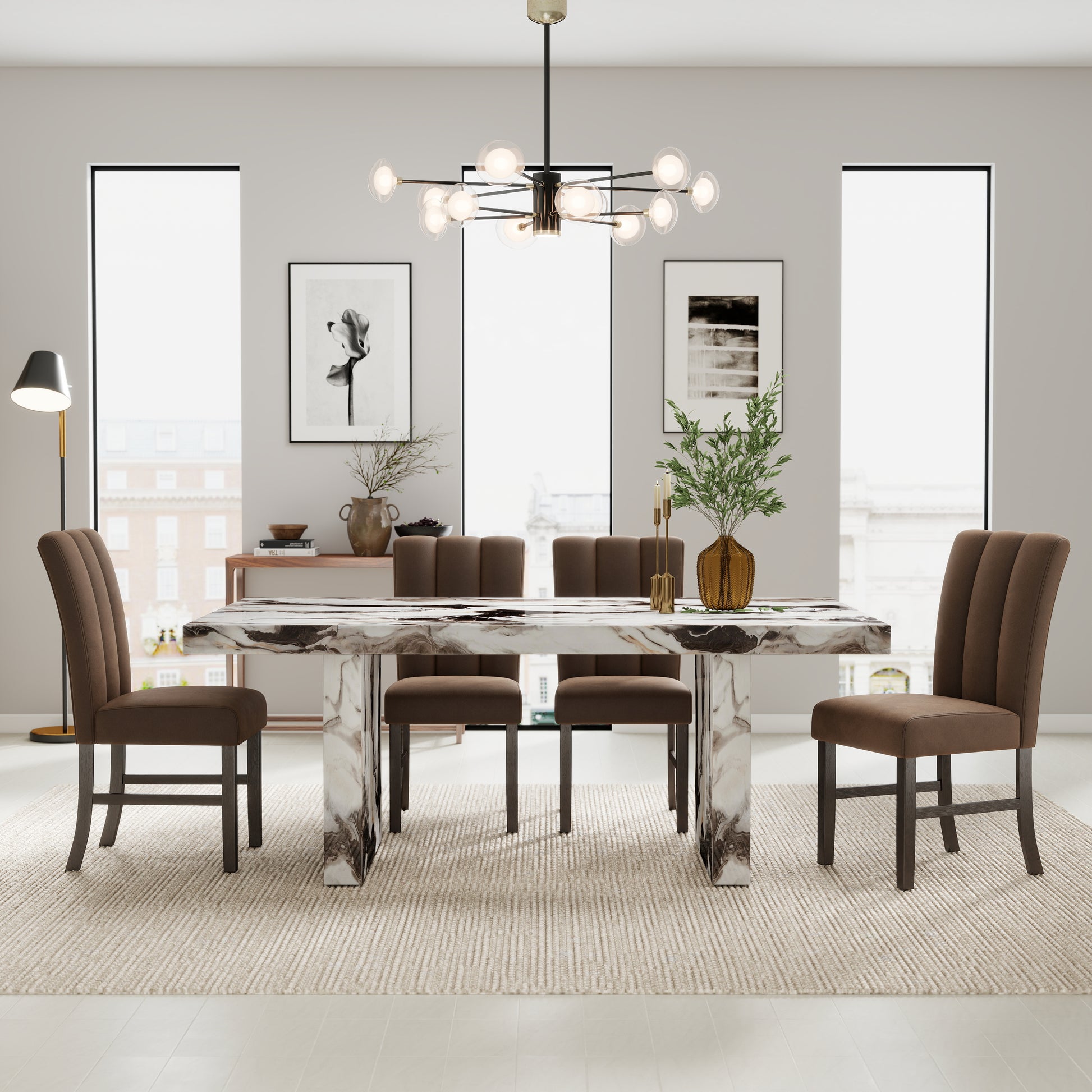 - Complete 5-Piece Dining Set: Includes one faux marble dining table and four upholstered dining chairs for a coordinated, upscale look.