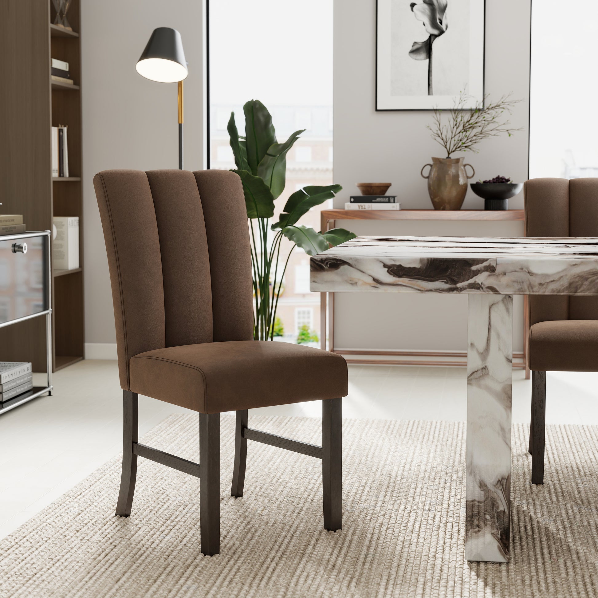 - Comfortable and Sturdy Chairs: Crafted with dark espresso finished solid rubberwood frames and upholstered in chocolate tone polyester for both comfort and durability.