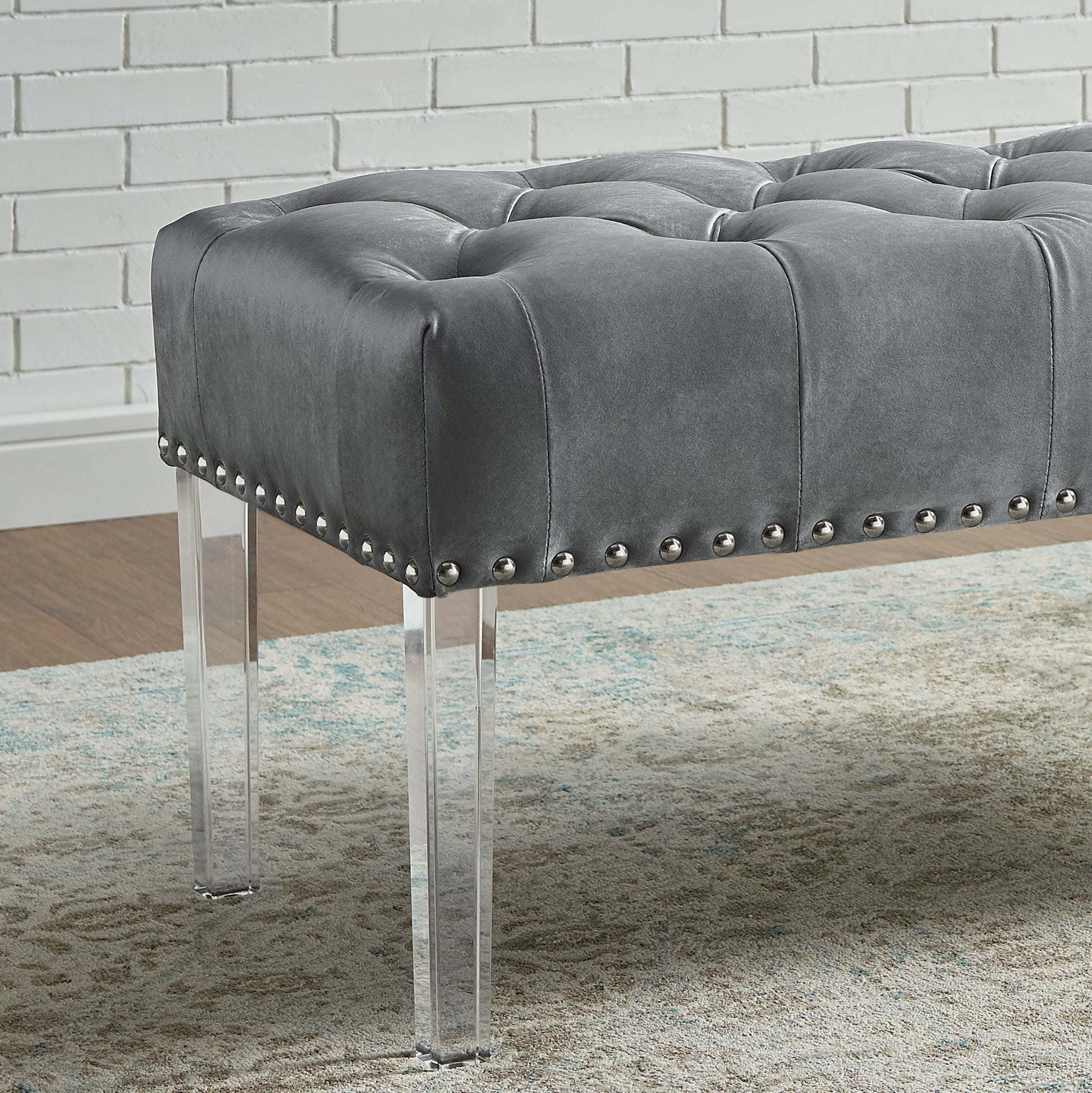 Place the versatile Valley Velvet Upholstered Bench at the foot of your bed or in the entryway for a convenient way to energize your living space. The clear acrylic legs provide sturdy support and are contrasted by the luxurious, button-tufted upholstery with nailhead trim. The plush foam padding offers comfortable seating. You won't want to pass up this unique bench, it's sure to steal the show in any space in your home.
