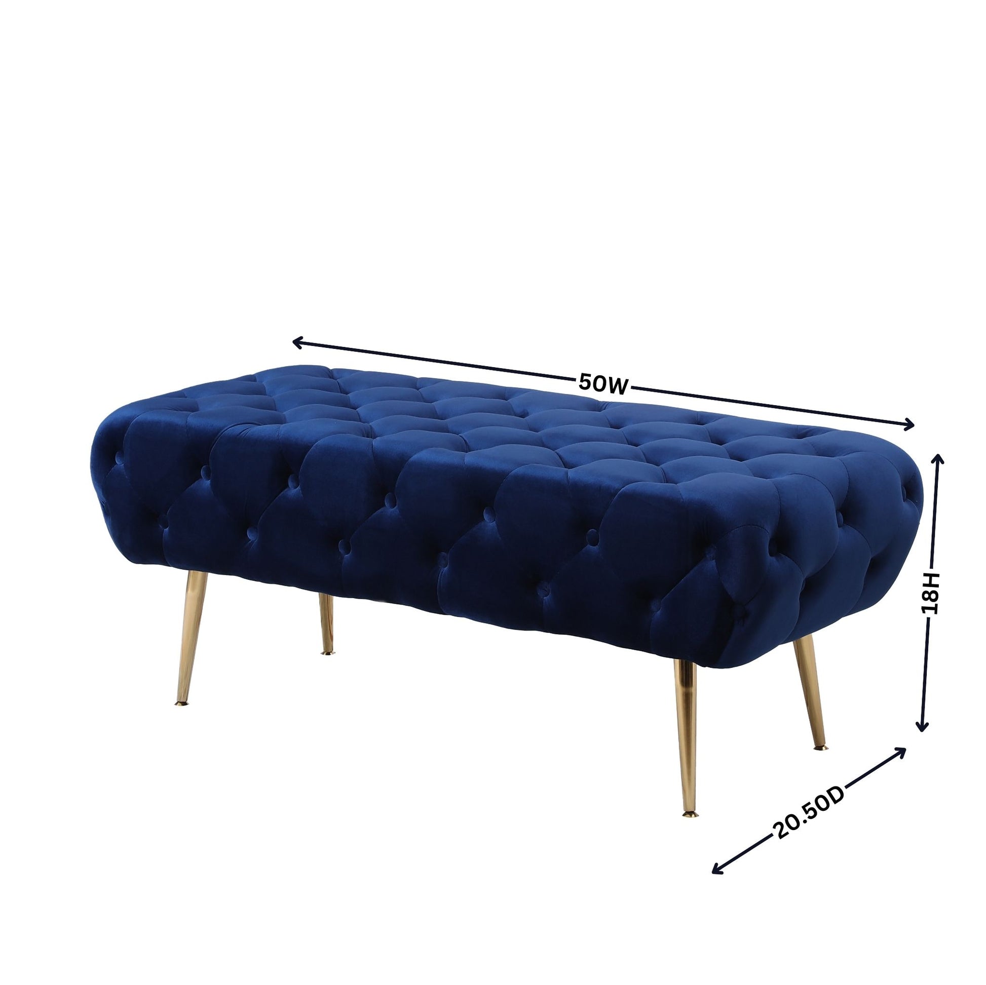 Roundhill Furniture Sira Velvet Button Tufted Bench with Gold Metal Legs, Blue