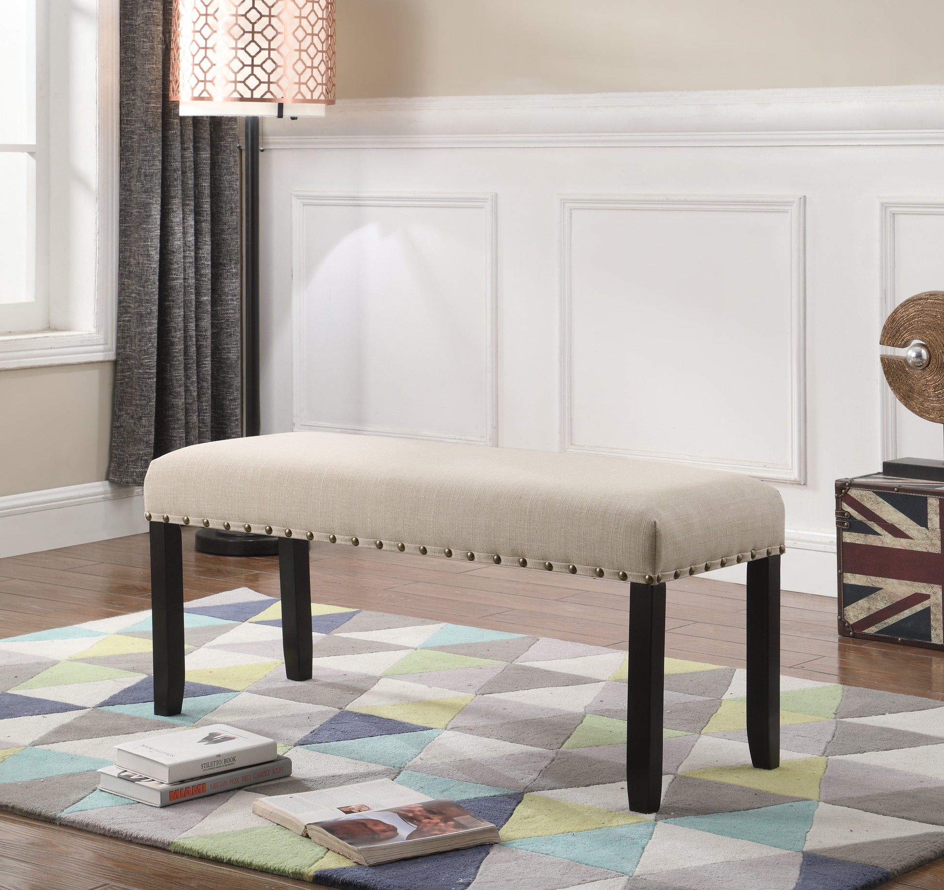 Roundhill Furniture Biony Fabric Dining Bench with Nailhead Trim, Tan