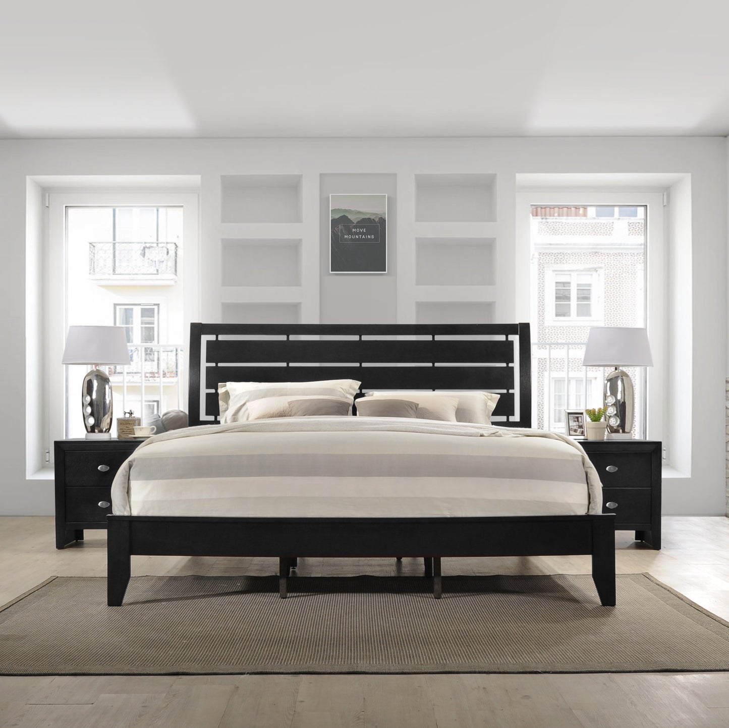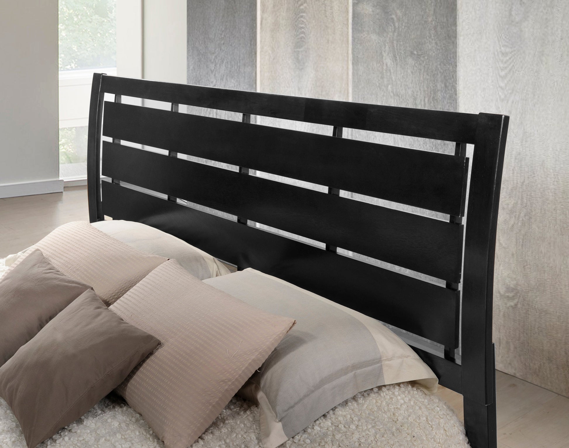 Ecrille Panel Bed with Slatted Headboard, Black