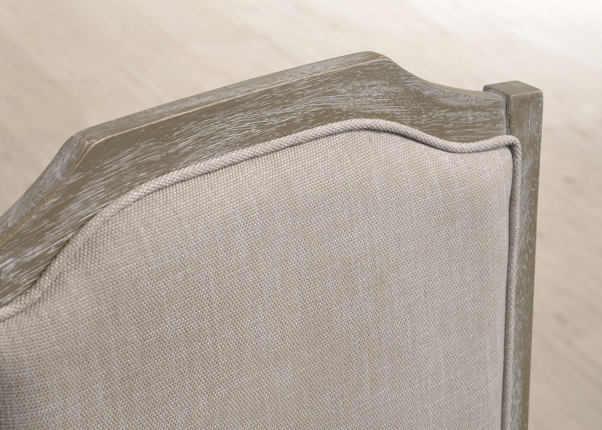 - Solid tan upholstered seat cushion adds comfort while complementing the chair’s rustic appeal.