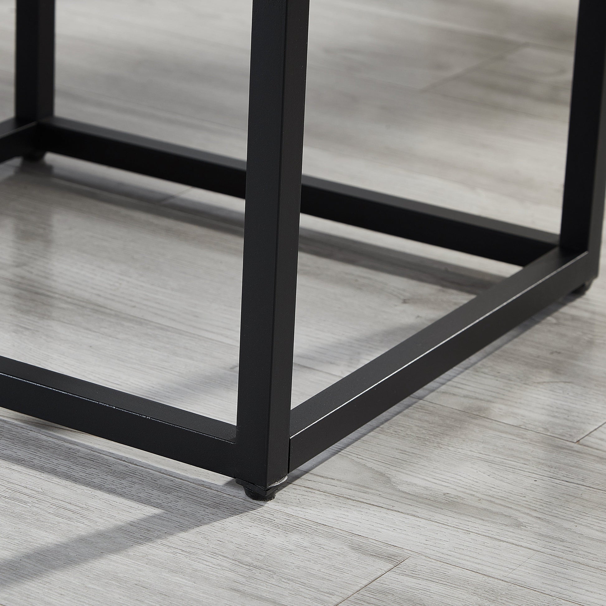 - Nightstands feature a paper-laminated veneer and sturdy square metal base for reinforced stability.