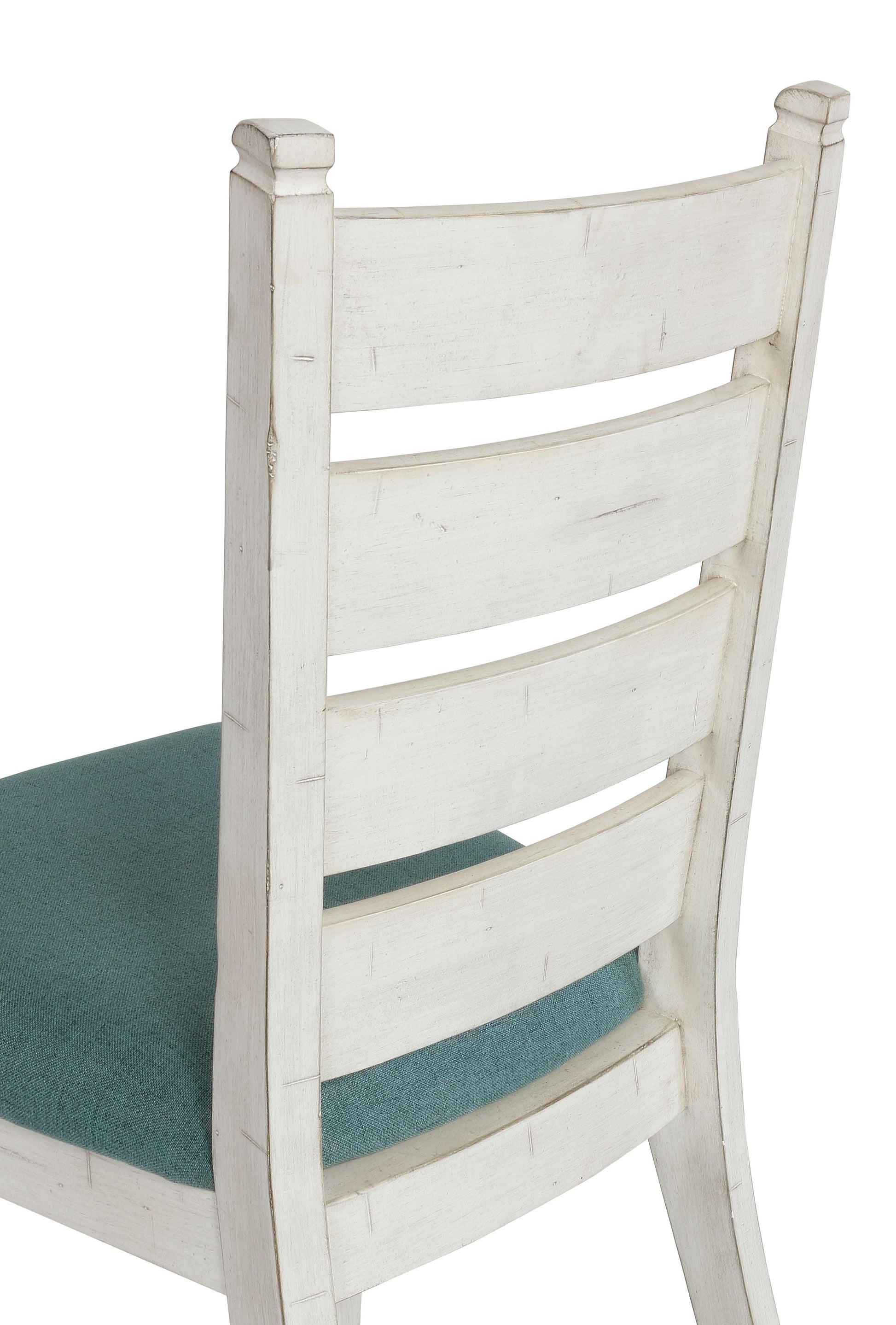 Florina Antique White Wood Ladderback Upholstered Dining Chairs, Set of 2