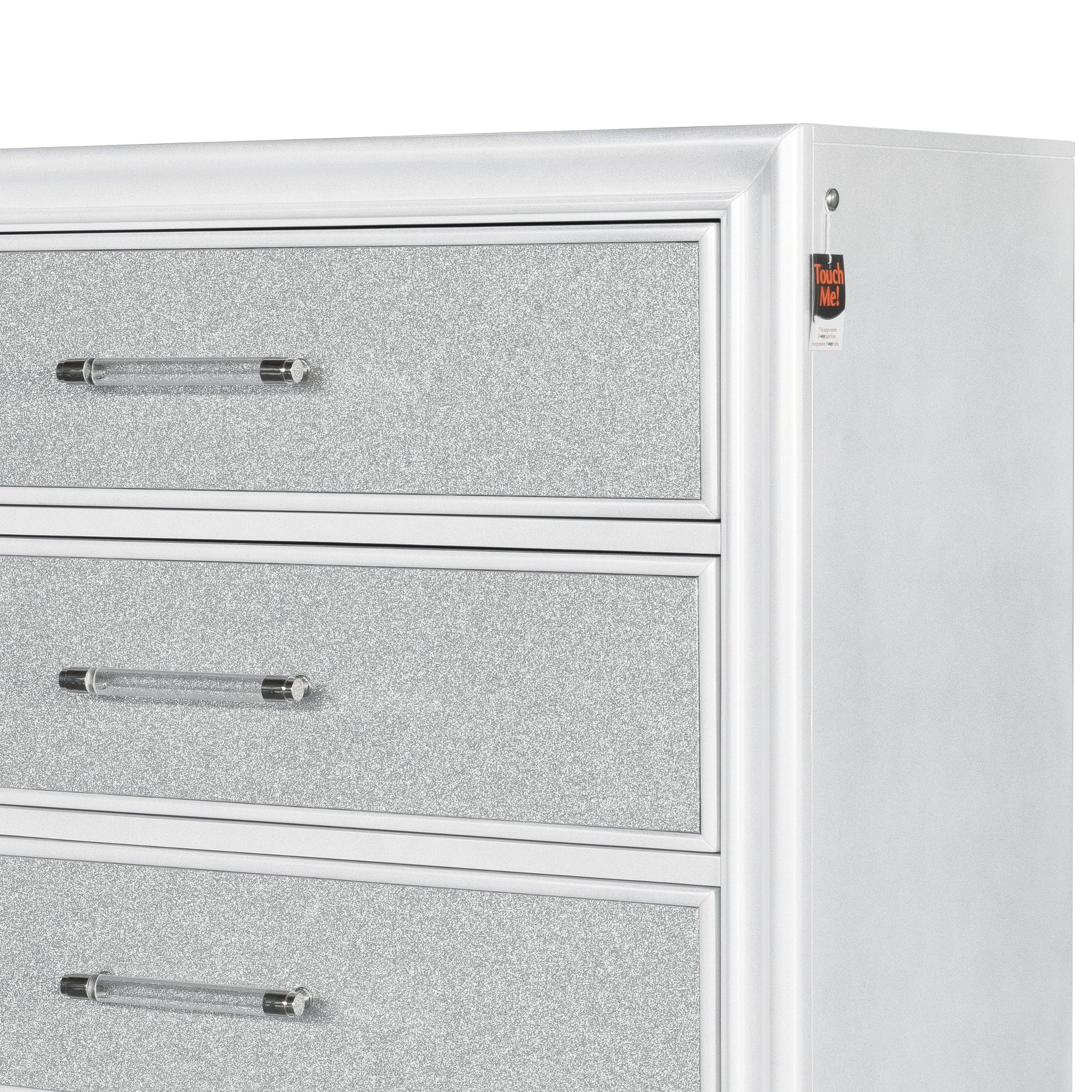 Galaxy 5-Drawer Bedroom Chest with LED Lights, Pearlized White