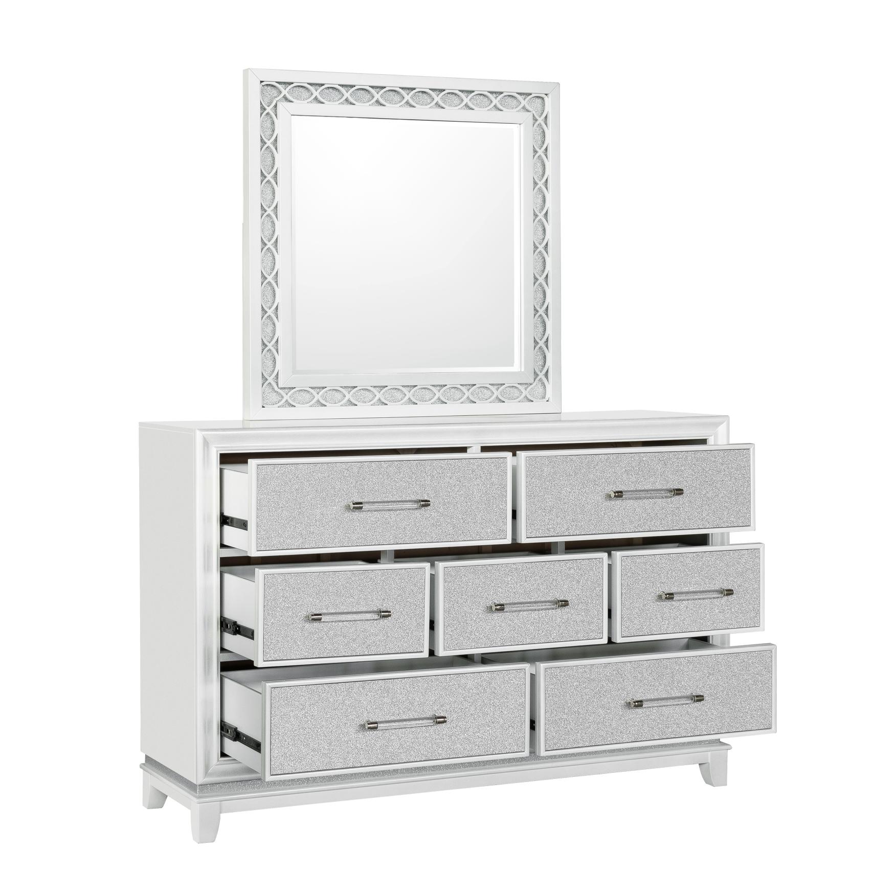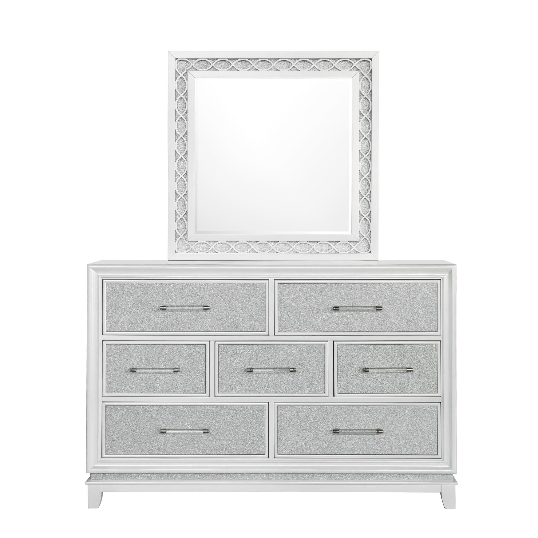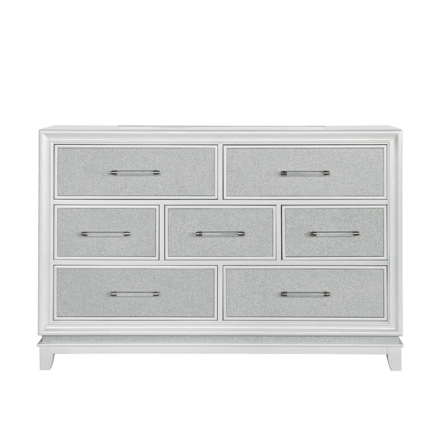 Galaxy 7-Drawer Bedroom Dresser with Mirror, With LED Lights, Pearlized White