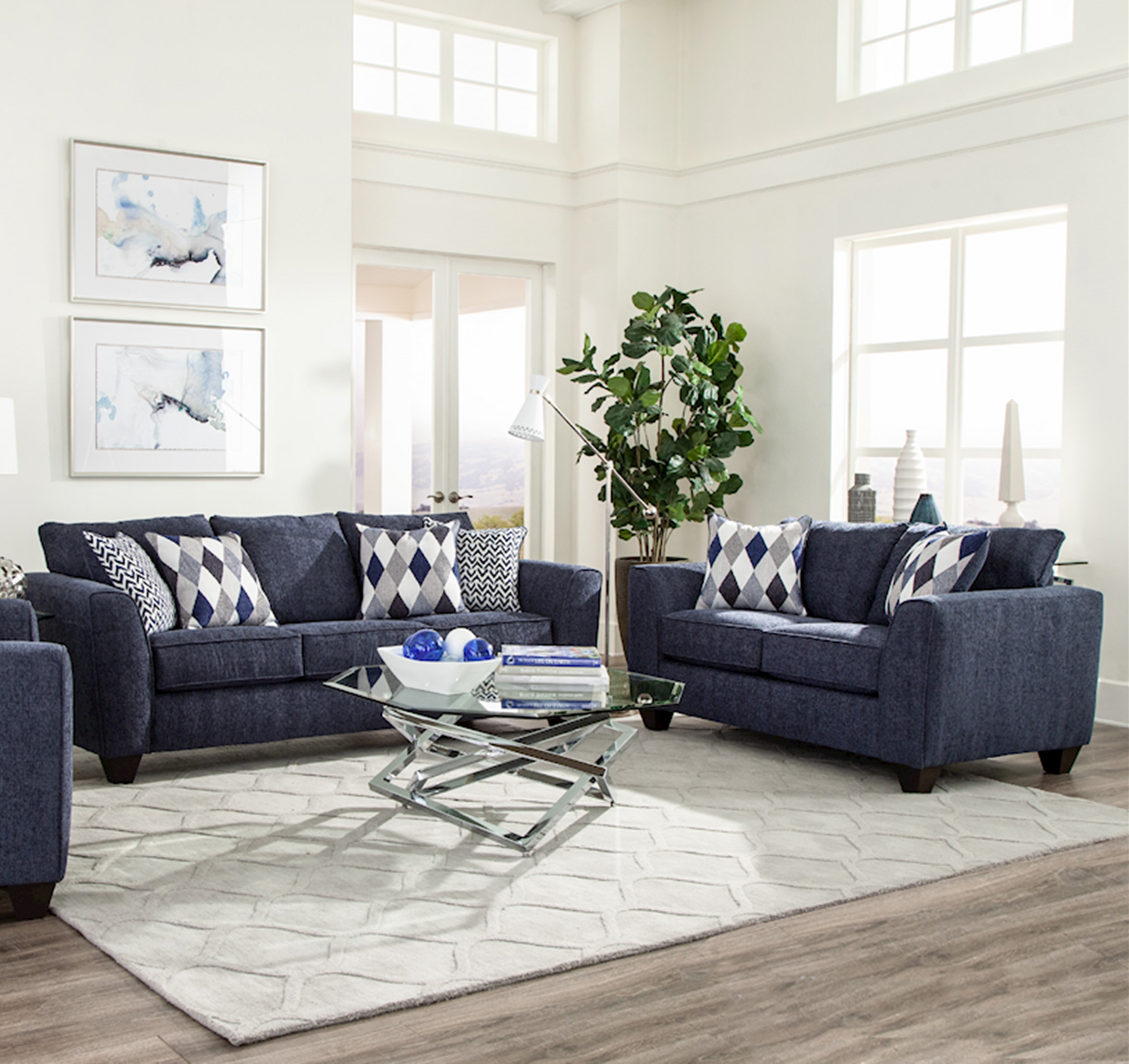 Chic, modern style meets your latest binge session with the Kanta Contemporary Fabric Pillow Back Living Room Collection. Sure to be the new favorite spot of everyone in the house, this sofa set features a soft indigo fabric upholstery. Dense foam cushions made the deep seating especially cozy, and the solid hardwood frame features a single platform base, so you'll be enjoying this set year after year. Throw pillows are included for a pleasing contrast.