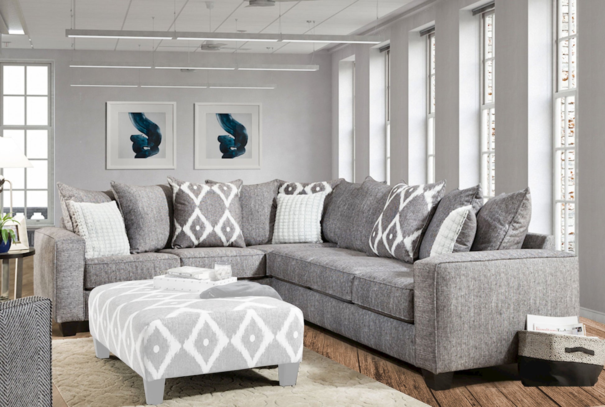 Bring extra comfort to your living space with the Vila Weathered Gray Fabric Pillow Back L-Shape Sectional Sofa and retain your sense of modern style as well. This L-shaped piece is constructed from long-lasting and solid and engineered wood with block black plastic feet for support. A handsome and chic medium-gray polyester fabric upholsters the piece. Every inch of the frame and cushions are padded with soft foam, while the cushions feature springs for support and comfort. This sofa features pillow backs for extra comfort, the matching throw pillows are all included.