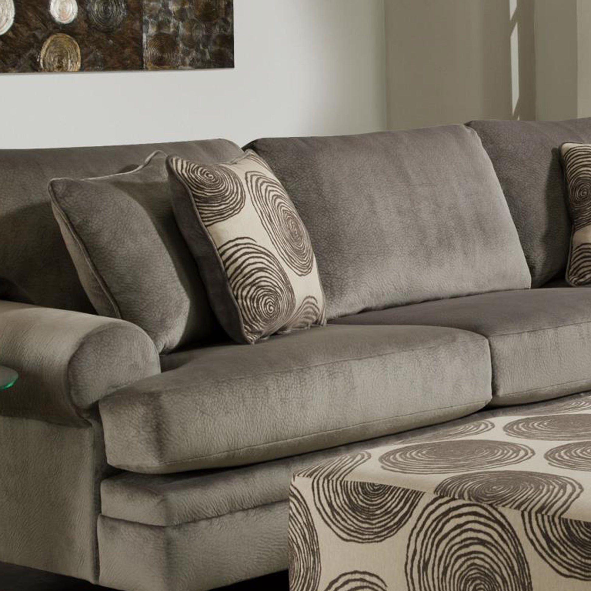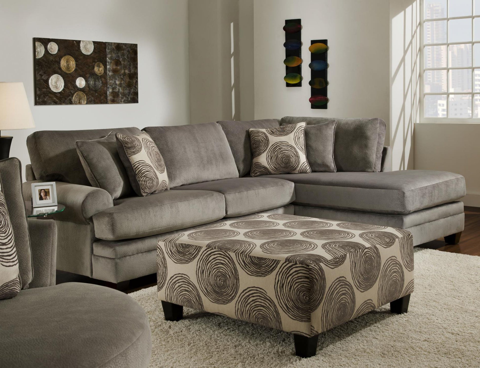 - The set includes a right-arm facing sectional sofa and a ottoman. Fabric upholstery in groovy smoke color, chaise section for lounging