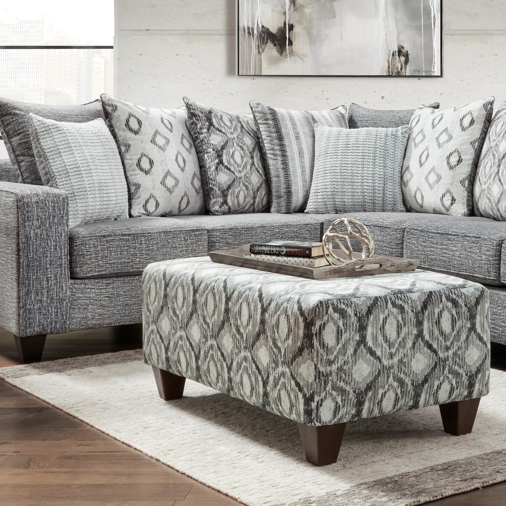 Elva Contemporary Fabric Pillow Back Sectional Sofa with Ottoman in Stonewash