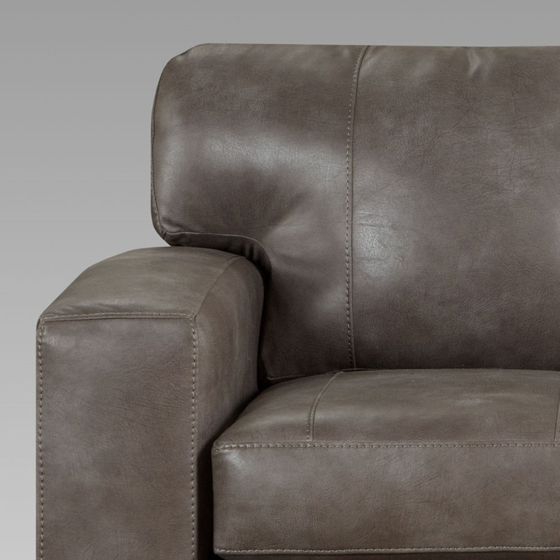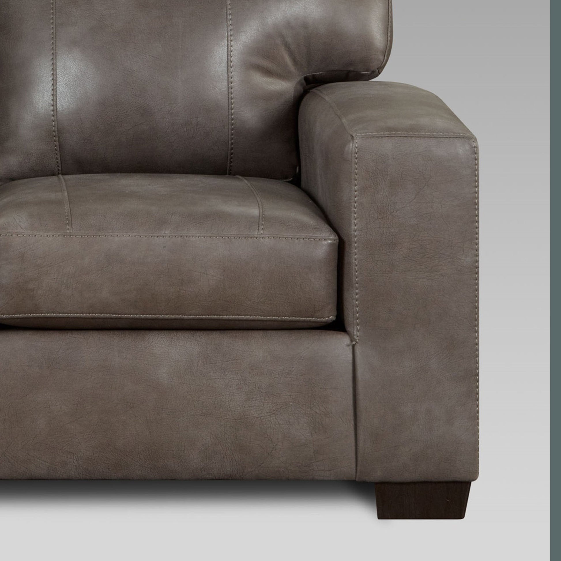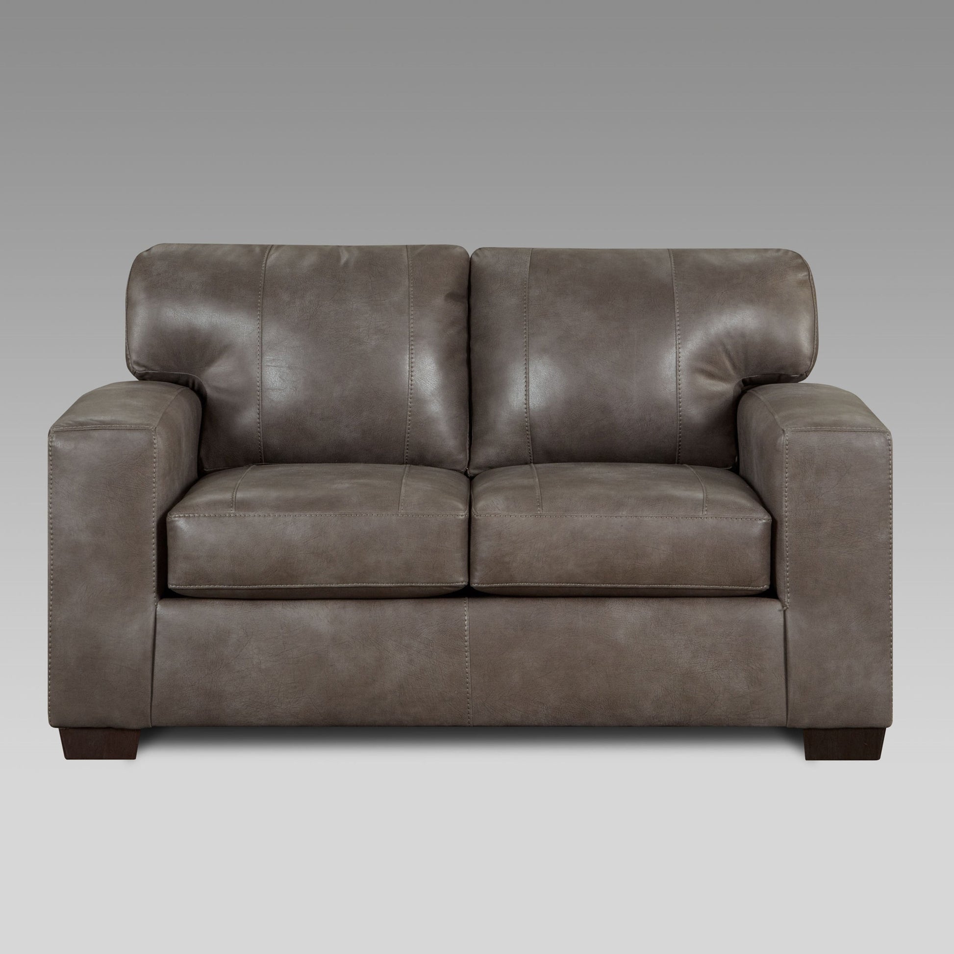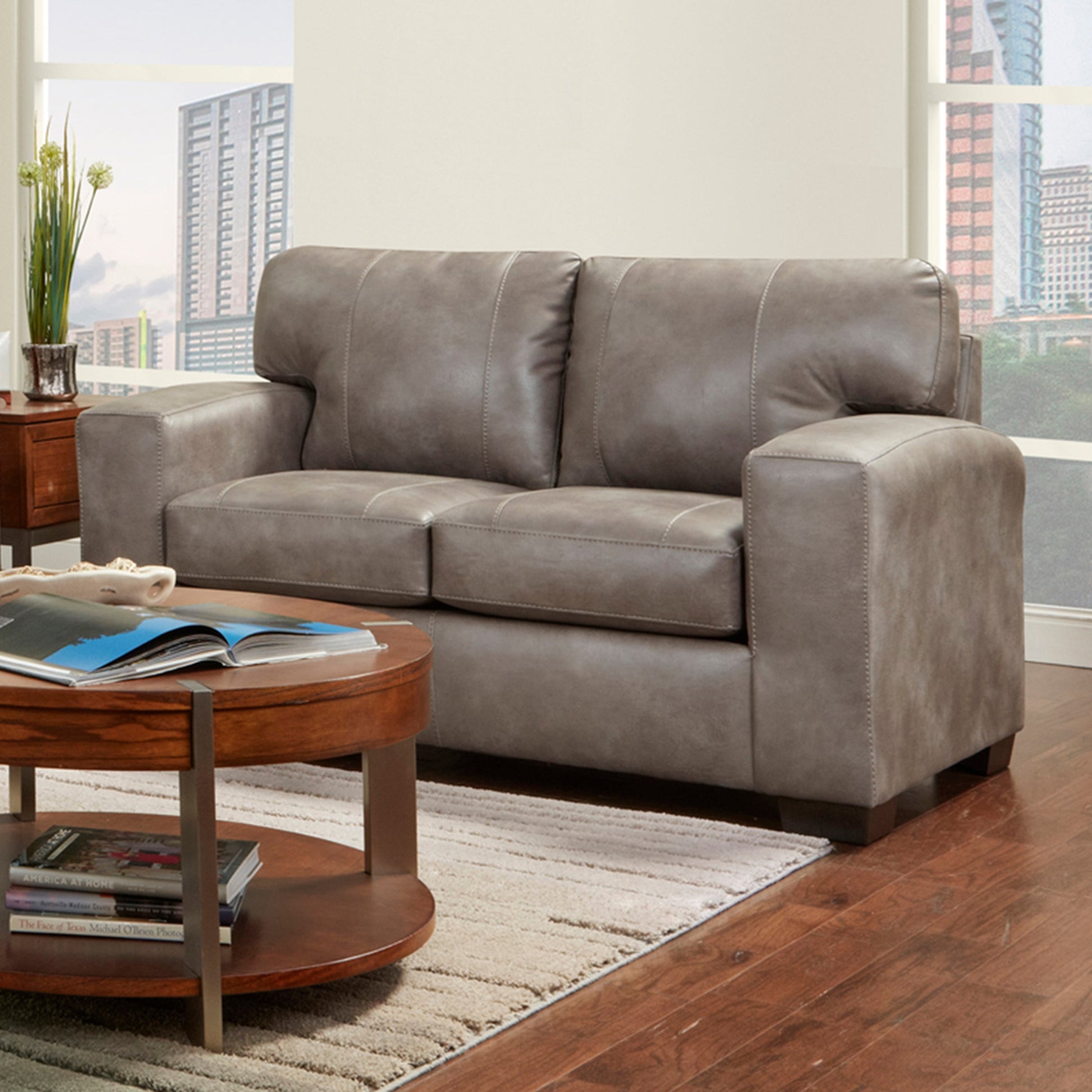 Smarten up your living room with the Noel Weathered Brown Faux Leather Loveseat. Contemporary style points include track arms, boxy cushions, and weathered brown faux leather upholstery fabric that matches any decor. The loveseat has a hardwood frame that's covered with thick foam padding beneath soft faux leather upholstery.