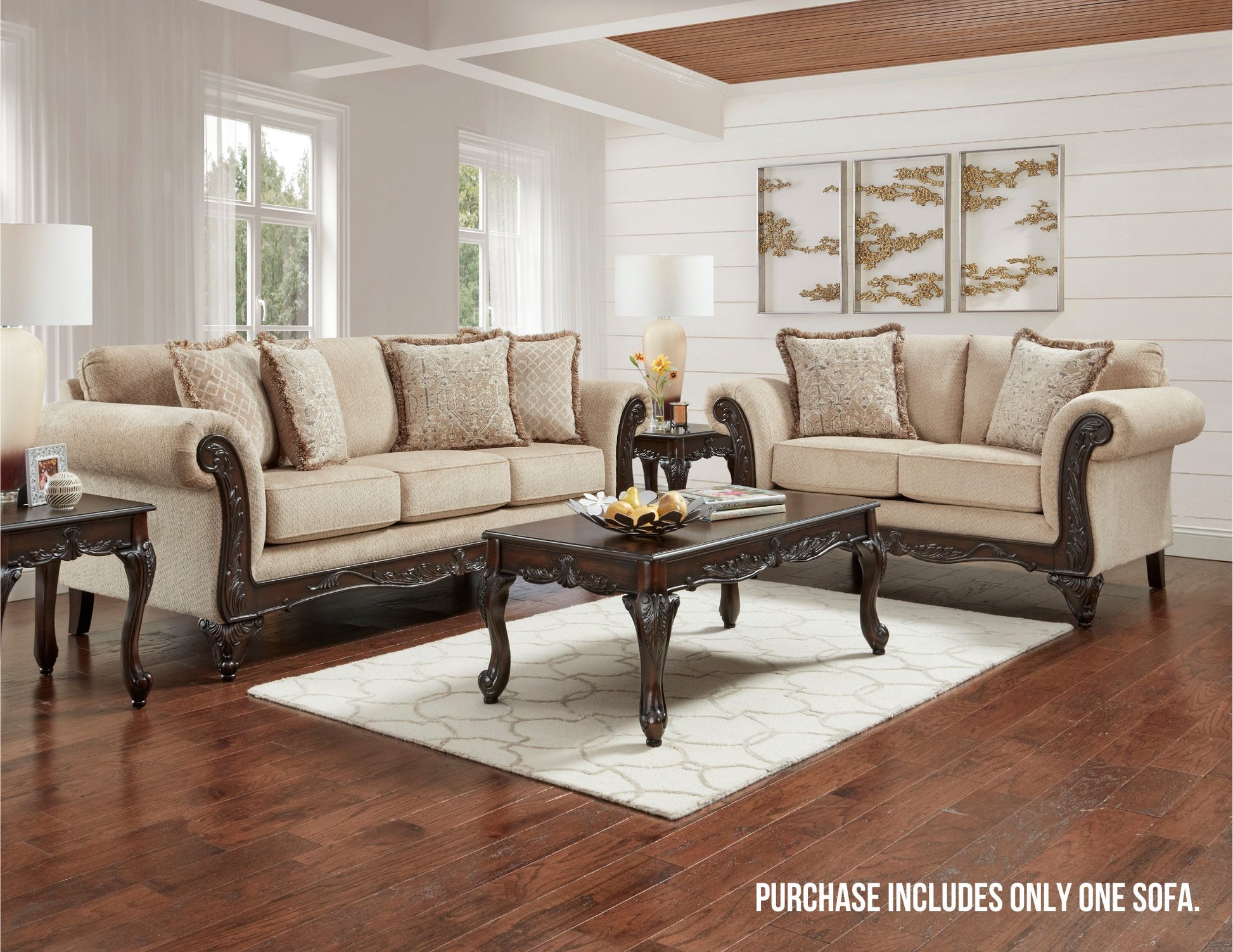 Hernen Carved Wood Frame Sofa