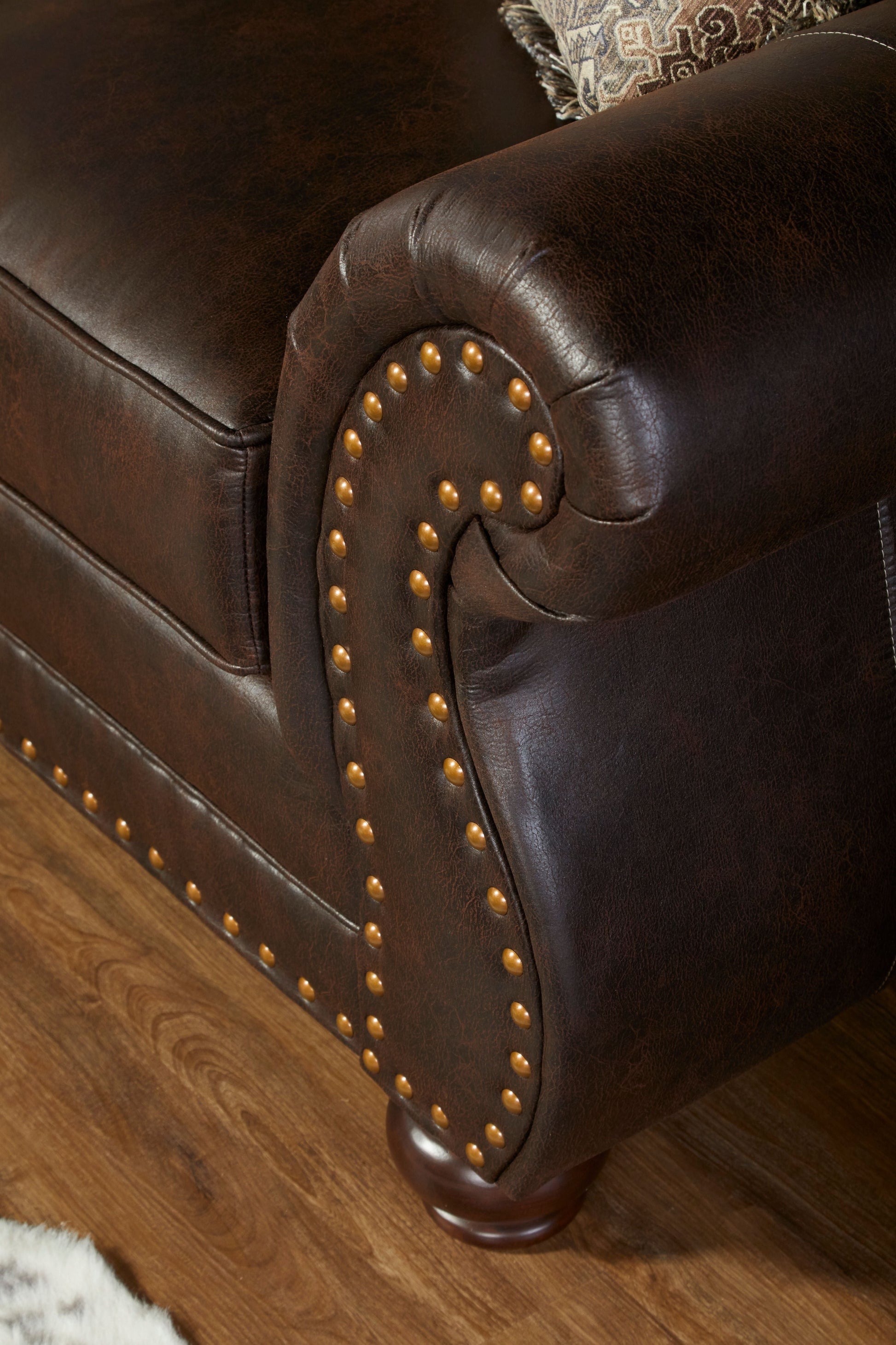 - Its extra padded silhouette is further defined by the outline of the nailheads, self-welt, and top stitched back cushions