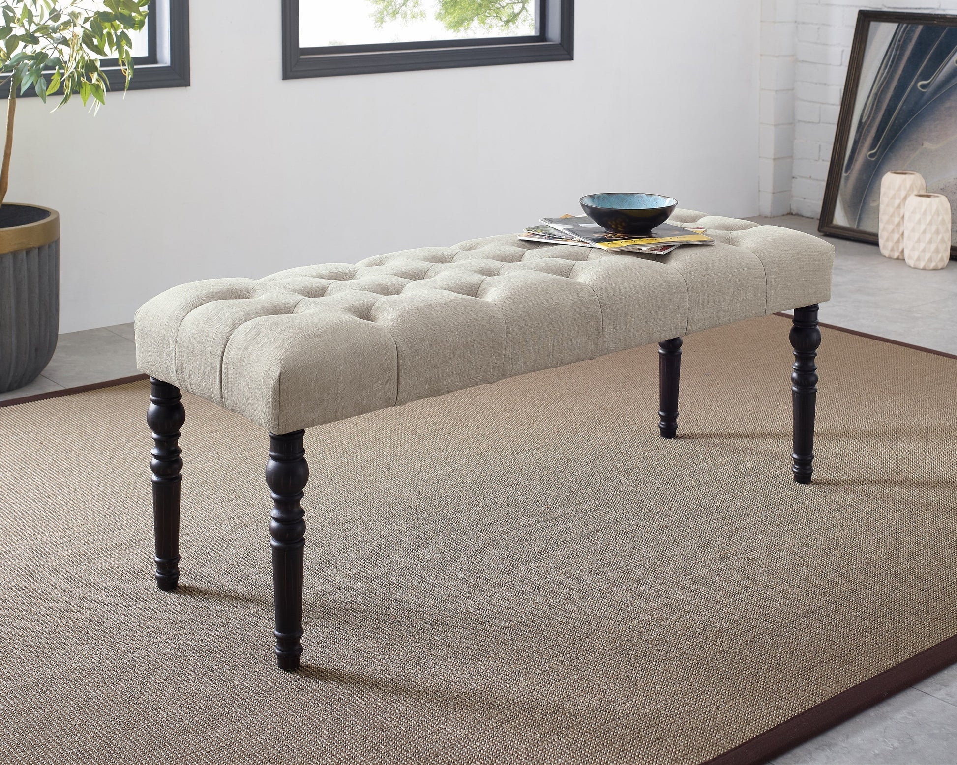 Leviton Fabric Tufted Turned Leg Dining Bench, Tan