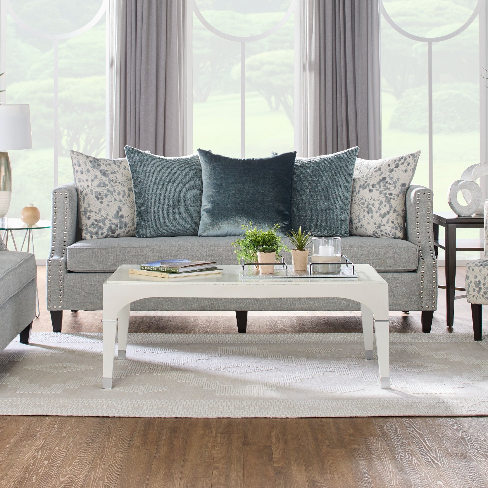 - Nailhead Trim on the Arm: The sofa features a tasteful nailhead trim adorning the armrests. This meticulous attention to detail enhances the overall aesthetic and adds a refined elegance to the piece