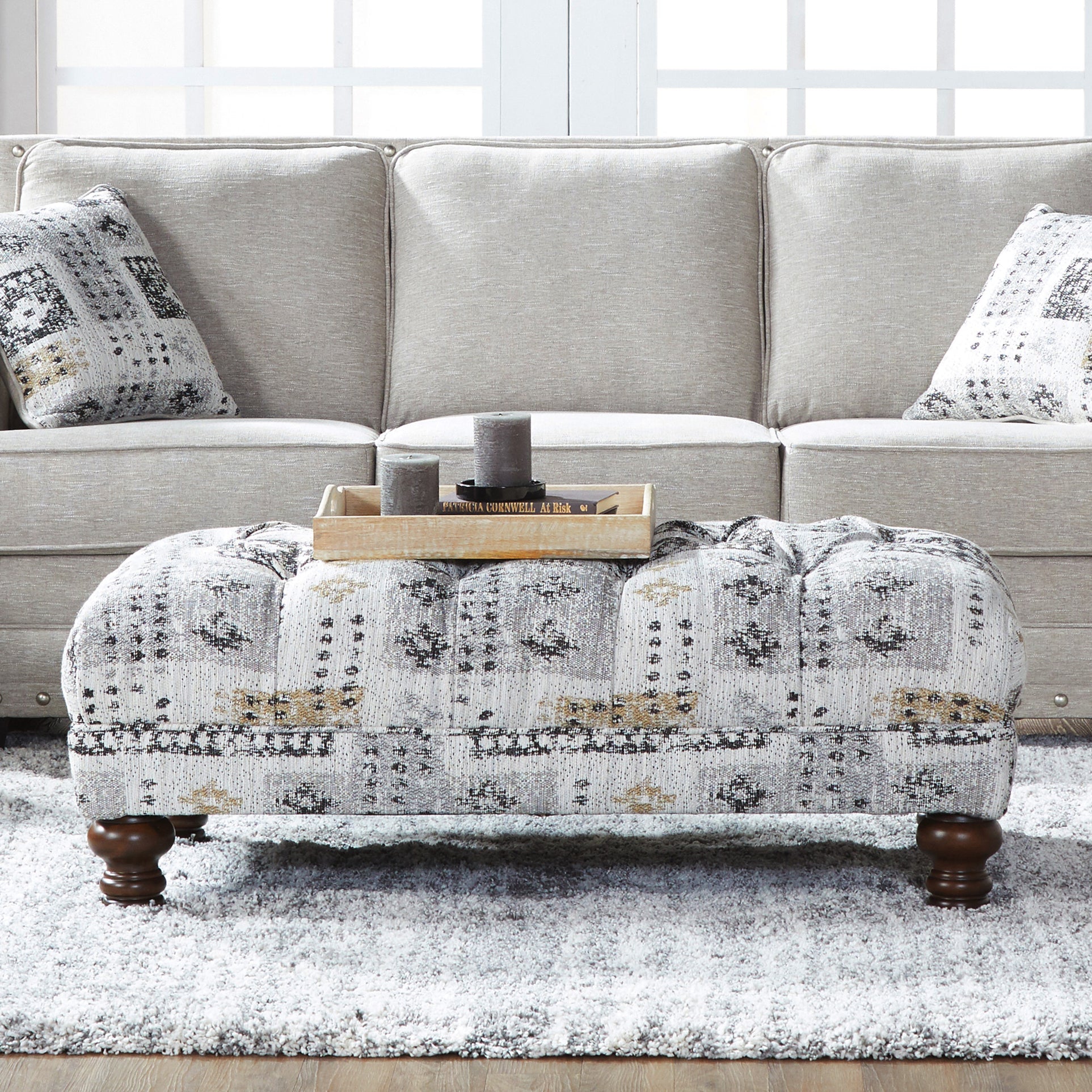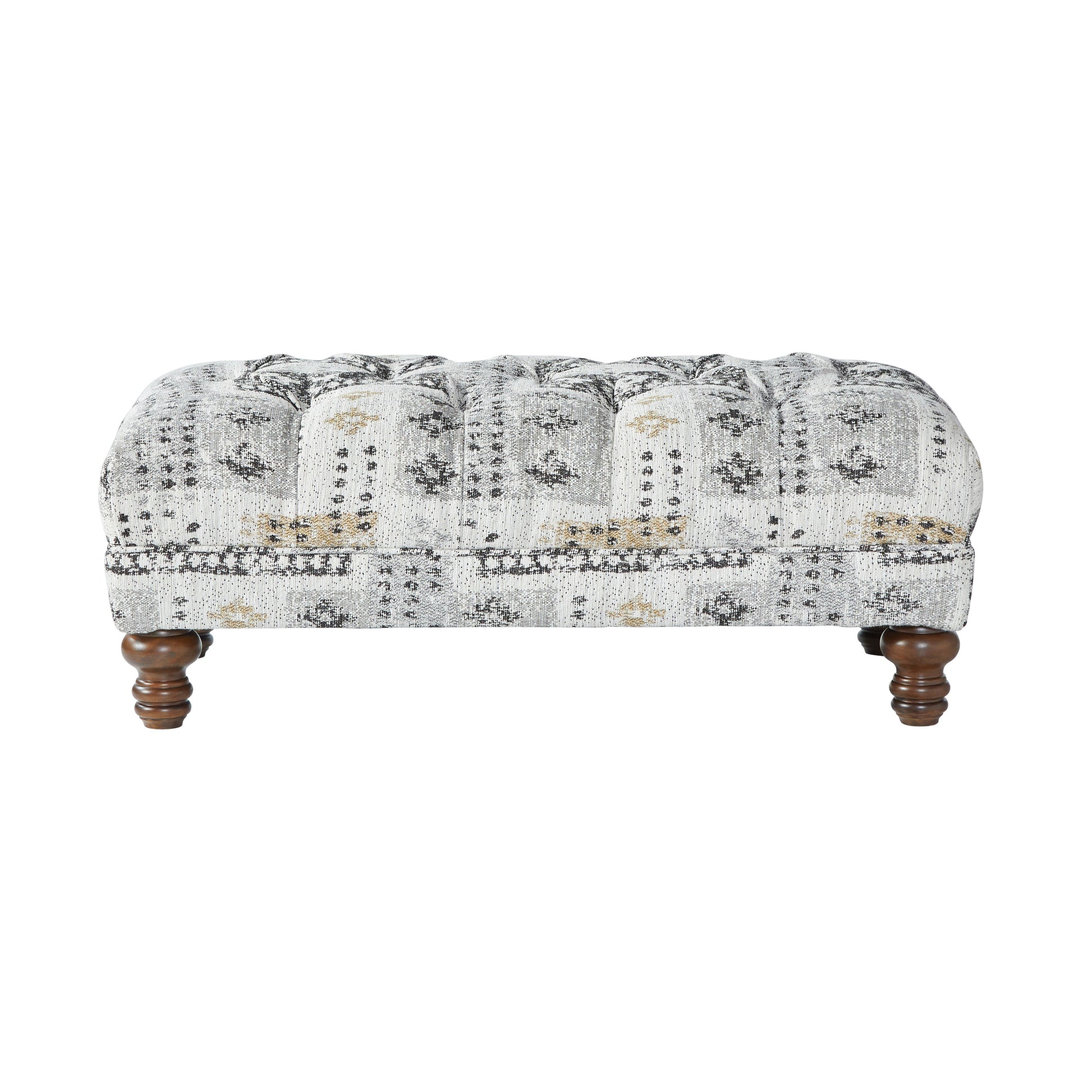 Introducing the Roundhill Furniture Charbilia Fabric Tufted Cocktail Ottoman, a captivating addition to your living space that exudes timeless elegance and sophistication. With its transitional style and stunning geometric print upholstery, this ottoman is sure to make a bold statement in any room. Designed to impress, the Charbilia Ottoman features turned solid wood legs that showcase remarkable craftsmanship and durability. Its tufted seat adds a touch of refinement, creating an inviting and luxurious seating experience. Indulge in the utmost comfort with the ottoman's high-density foam seat, providing an ideal spot for extra seating or as a cozy footrest. Whether you're entertaining guests or seeking a moment of relaxation, the Charbilia Ottoman ensures you do so in style. Embrace versatility with this charming ottoman, offering both extra seating for gatherings and a delightful footrest to enhance your comfort. Its functionality makes it an ideal addition to your living room, bedroom, or any space in need of a touch of sophistication.