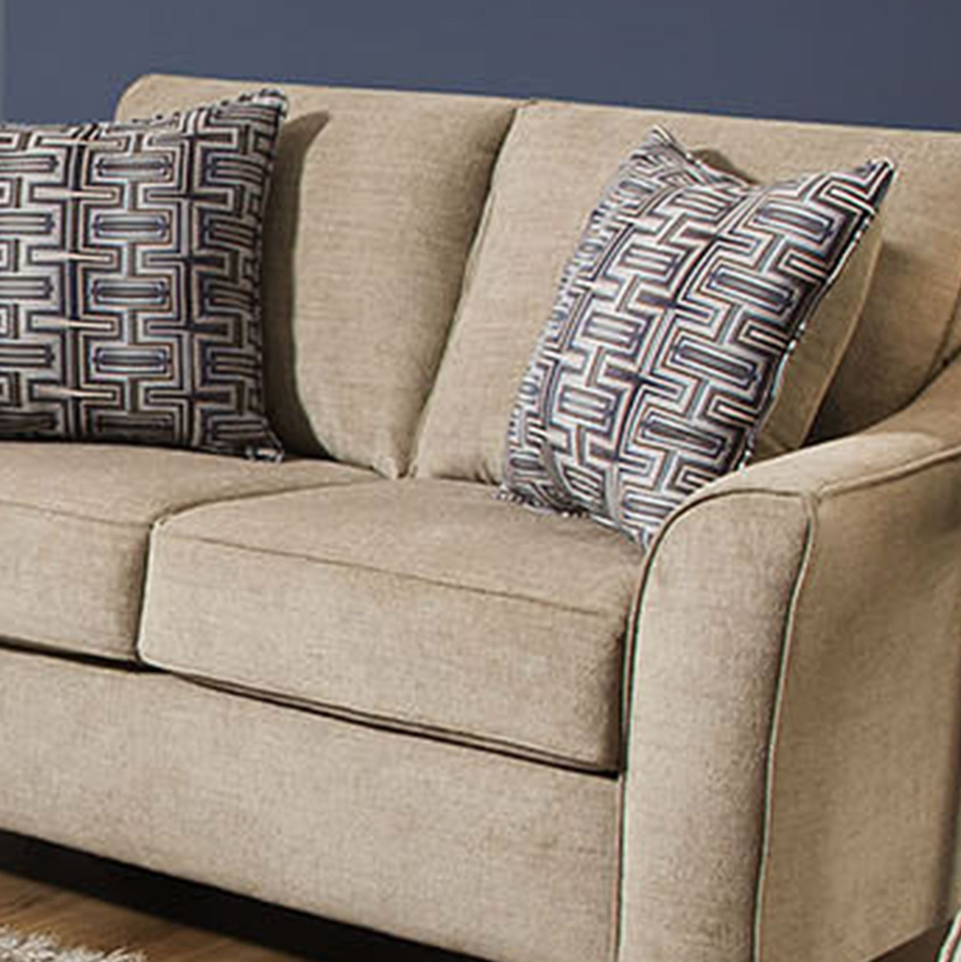 - Upholstered with soft chenille in taupe, the seat and back are thickly padded with high density and Dacron wrapped foam. Two floral pattern accent pillows are included