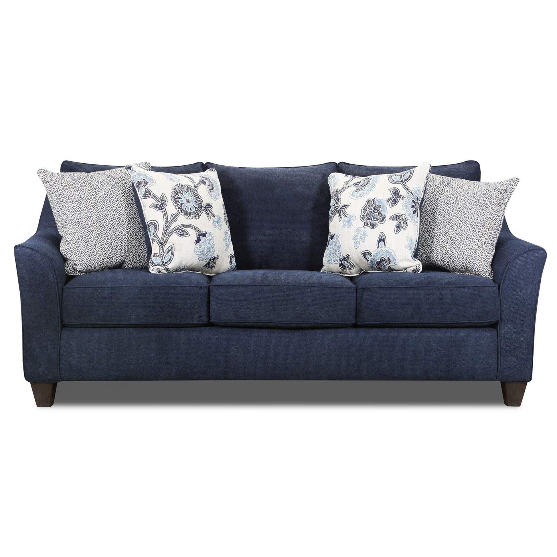 Alva Transitional Style Fabric Flared Arm Sofa, Navy