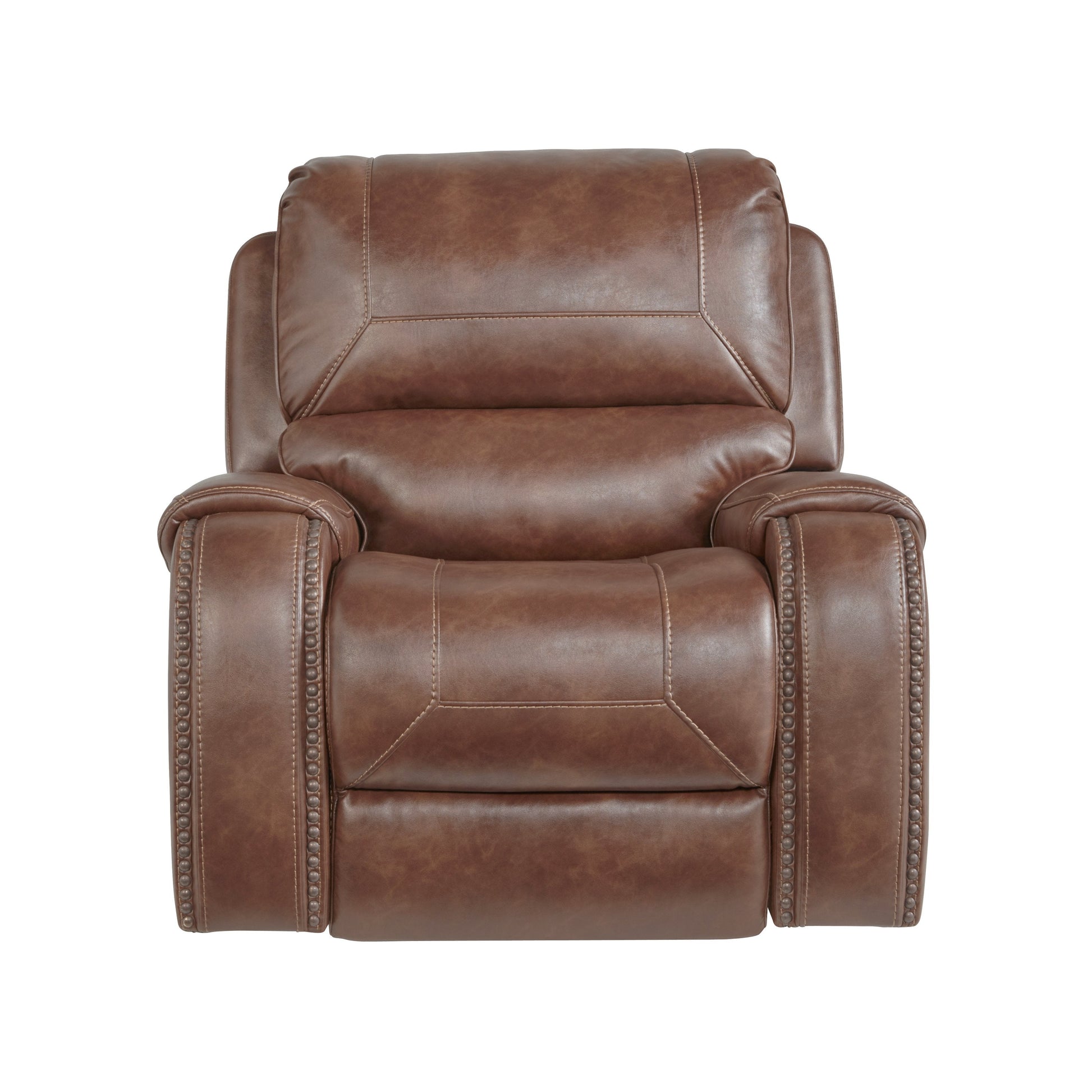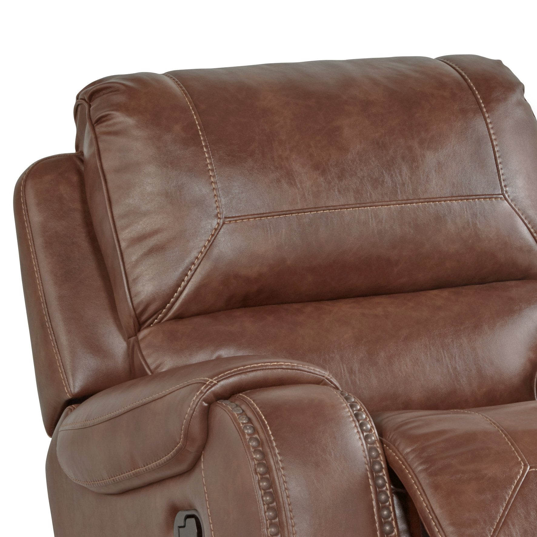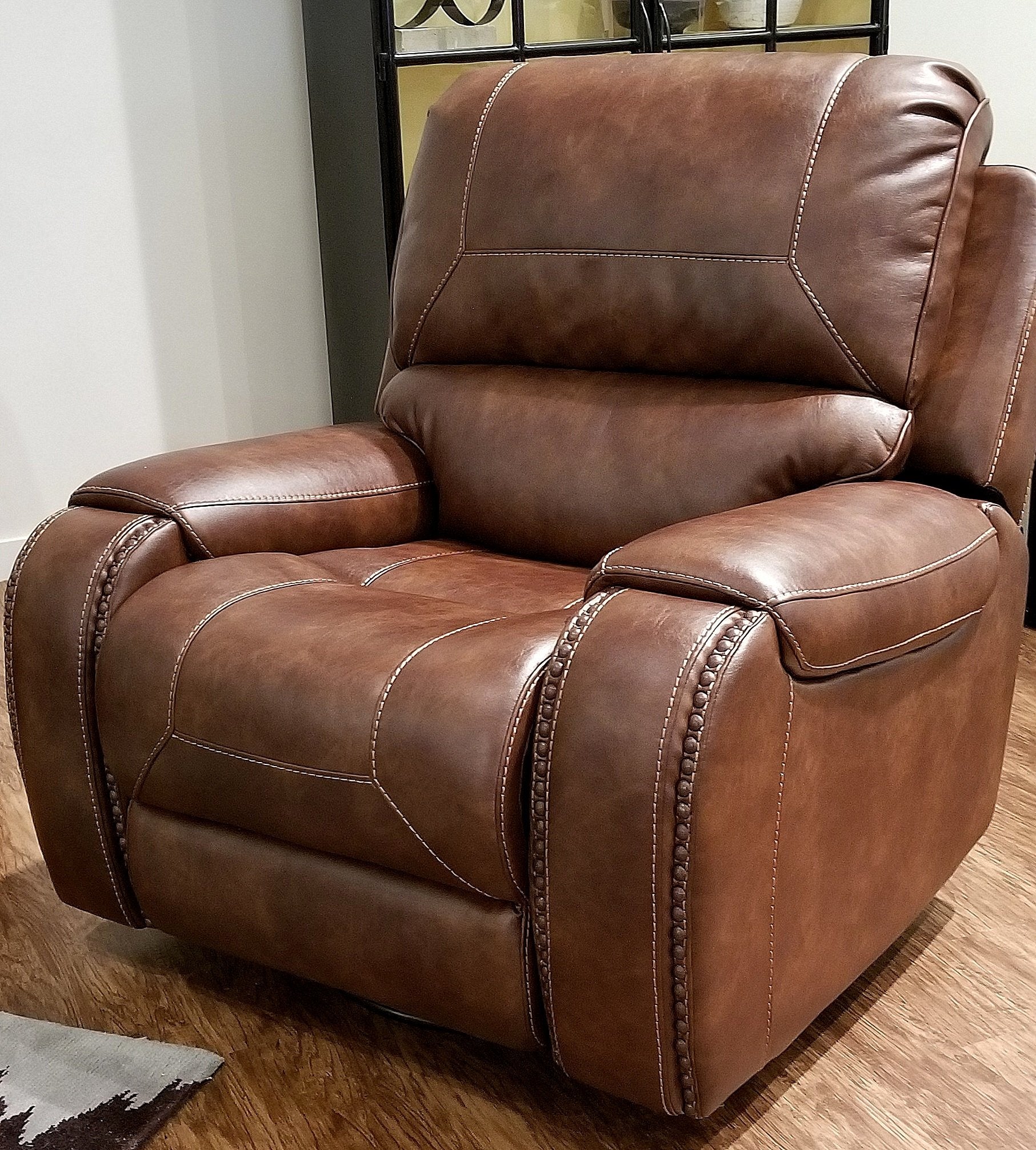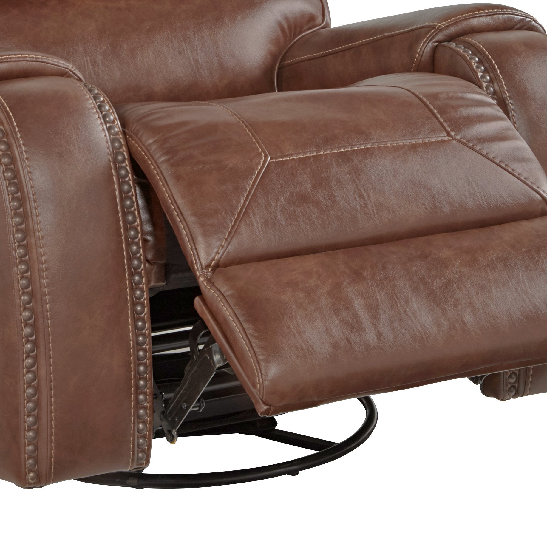 Achern Brown Leather Nailhead Swivel Glider Recliner