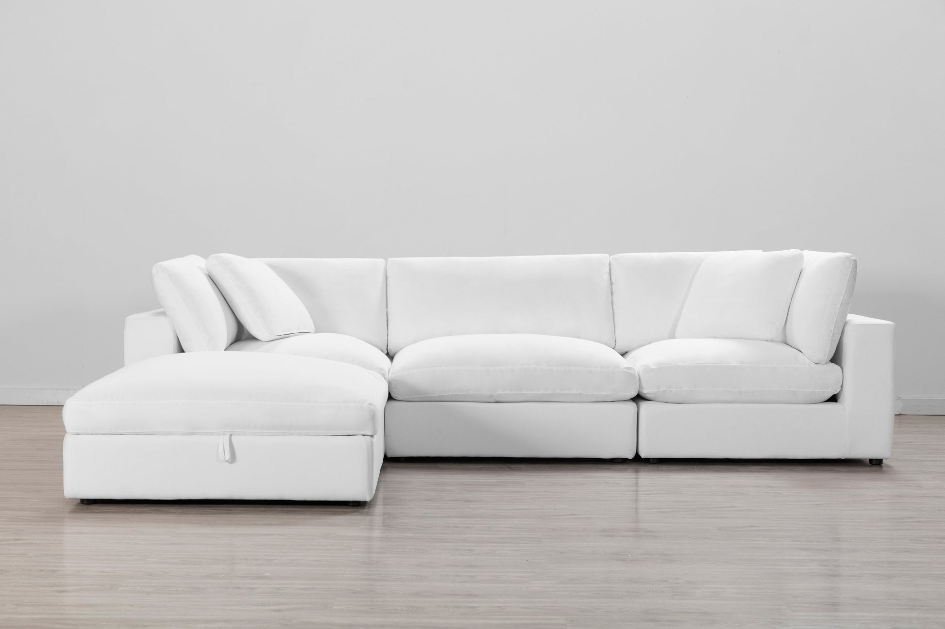 - Includes 2 corner pieces, 1 armless chair, 1 storage ottoman. This cloud-like modular sofa can be configured in any shape and space, build your personal lounge space with these individual pieces