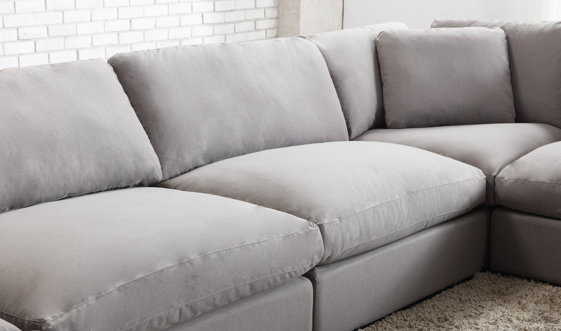 Love the way you lounge with the Rivas Contemporary Feather Fill Modular Sectional Sofa. This cloud-like modular sofa can be configured in any shape and space. The pieces have plush, breathable polyester blended upholstery in your choice of color. The feather-filled cushion provides a plush seating experience, supported by sinuous springs. The performance fabric is made with stain-resistant technology, features moisture repellent and barrier protection that safeguards your sofa all the way through. The durability of the fabric keeps your furniture looking and feeling as beautiful as the day you brought it home.