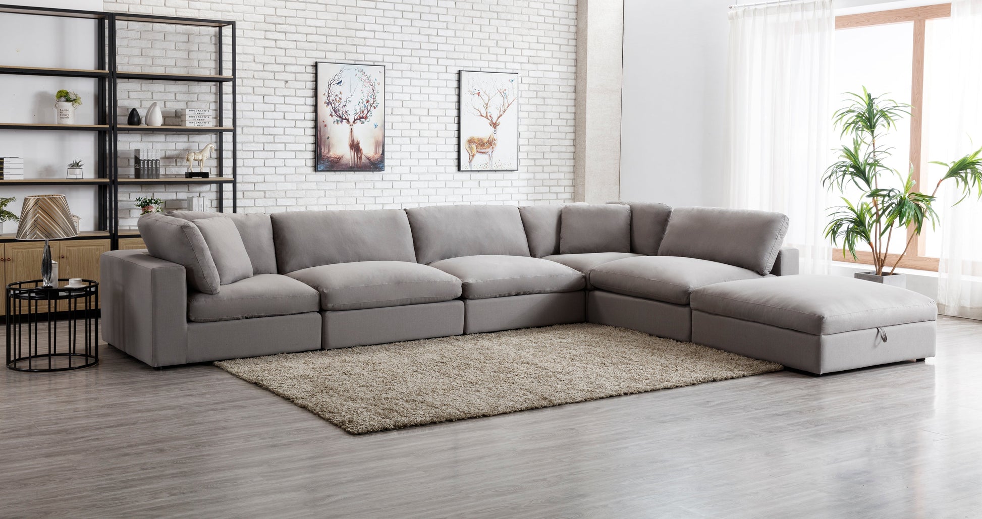 - Includes 2 corner pieces, 3 armless chairs, 1 storage ottoman. This cloud-like modular sofa can be configured in any shape and space, build your personal lounge space with these individual pieces