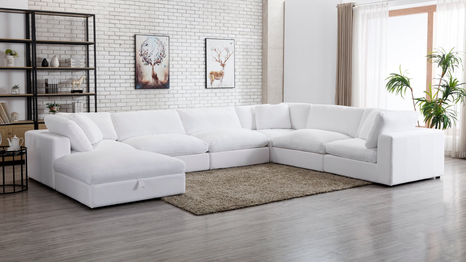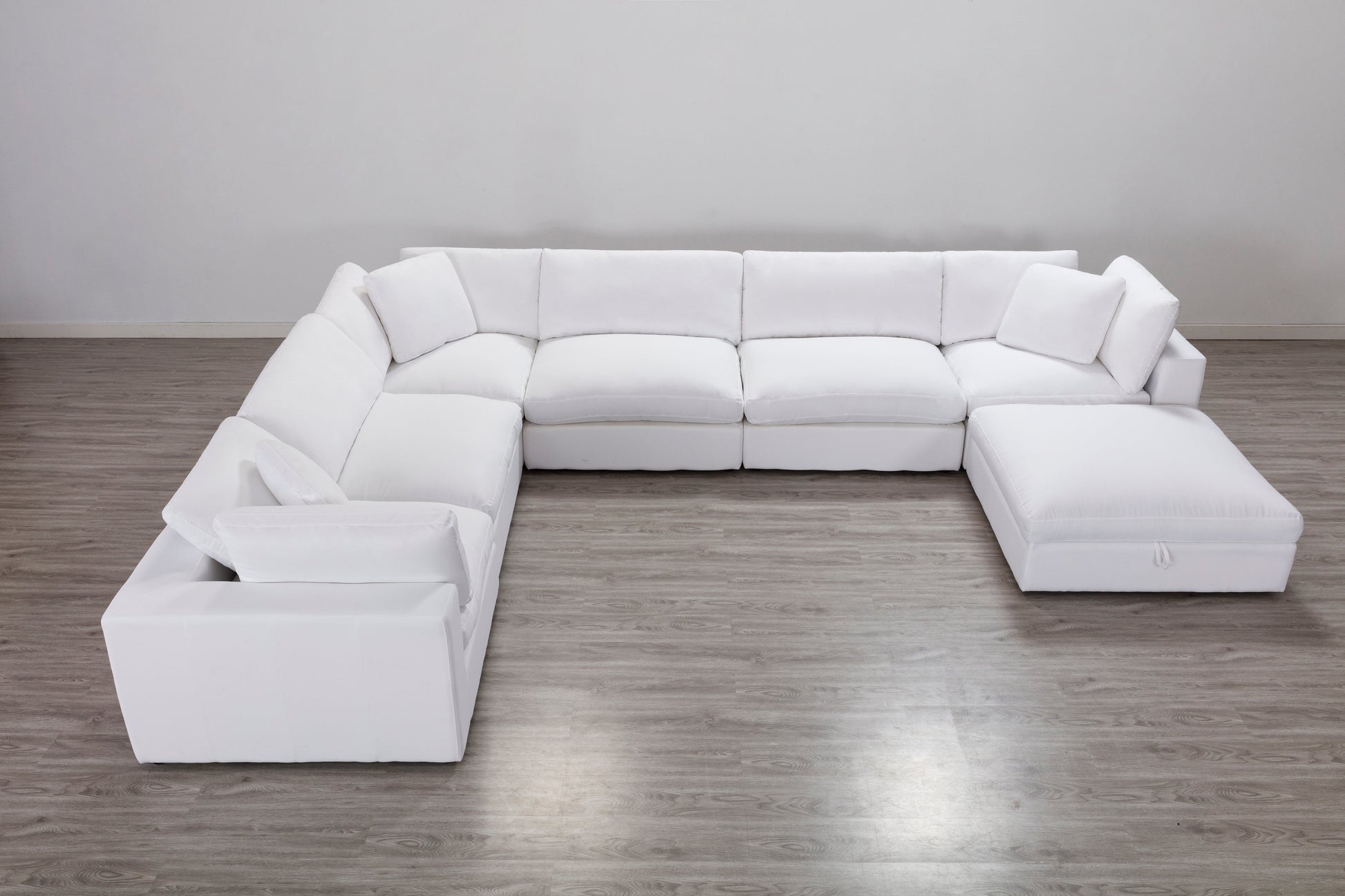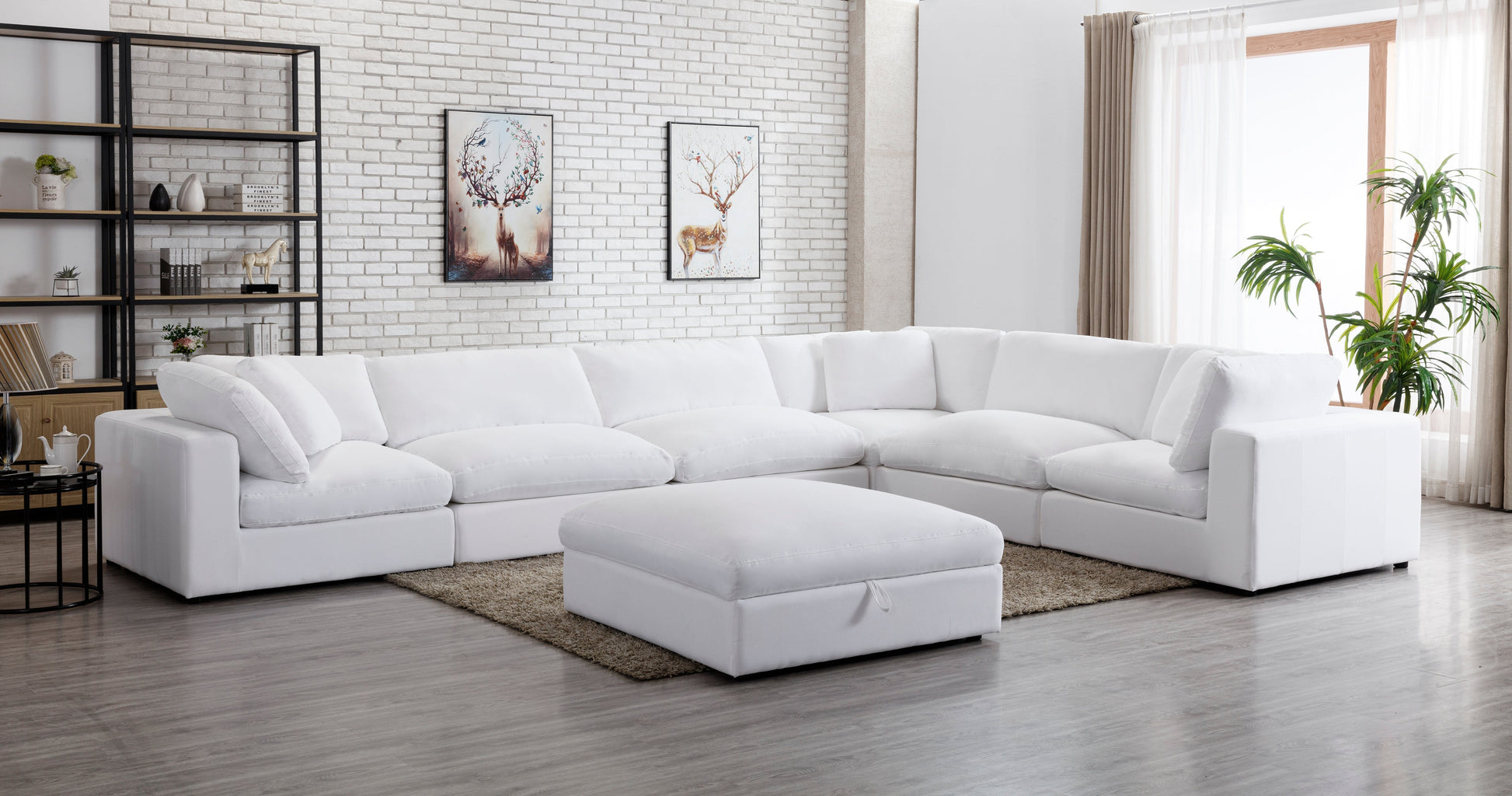 Rivas Contemporary Feather Fill 7-Piece Modular Sectional Sofa with Ottoman, White