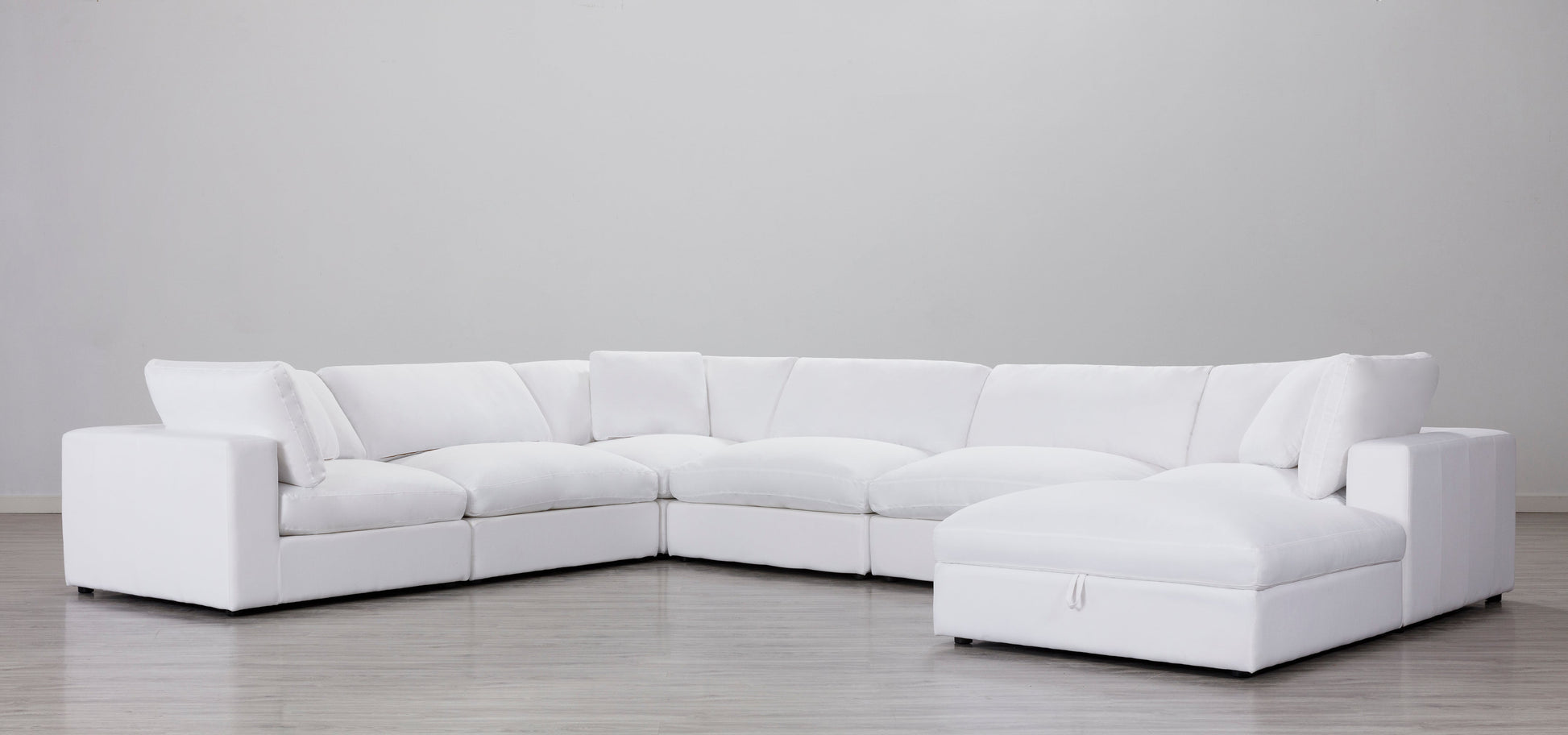 - Includes 3 corner pieces, 3 armless chairs, 1 storage ottoman. This cloud-like modular sofa can be configured in any shape and space, build your personal lounge space with these individual pieces